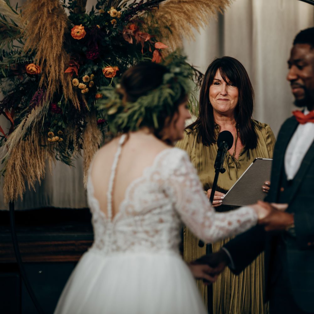 If you think about it, at every wedding there will be a lot of guests present who know either the bride or groom really well but have only met their other half a handful of times. Godparents, family friends, aunties, uncles, cousins, nieces and nephews. They see you as a couple briefly, if at all. At the end of our wedding ceremony, officiated by the amazing Jo, so many people came up to us and said, "I now feel like I know your story." Jo created a ceremony that told our story with sincerity, warmth, a few laughs and couple of wet eyes, so that every one of our guests knew why we were stood in front of them promising to be together forever. The ceremony was unique to us, and our guests loved it. The process is so easy going, too. You fill in a little questionnaire about 3 months before the wedding, Jo will ask a few questions and have a first draft of your ceremony ready when you meet about 8 weeks prior to your big day. We could've gone with draft one, to be honest, it was already that good. Hearing your ceremony read out to you is really exciting - but actually that's just the start. Jo will tweak things based on your reactions, ask you your thoughts and see if there's anything you'd like to add. If there is anything you want to add, all you need to do is tell her what it is and the tone you'd like, and she'll handle the rest. We ended up with so many brilliant ideas which made our ceremony so unique which came from that meeting. Jo came up with a beautiful tribute to honour the bride's father who we sadly lost a number of years ago. And she perfectly incorporated some lyrics from our exit song at the end of the ceremony. And aside from what Jo adds to your wedding day itself, which is more than enough to justify hiring her, she is also incredibly thoughtful and reassuring in the run up to the day. She checked in with us every few weeks to see how we were getting on, offered advice and guidance, answered any questions we had and was just generally really supportive of us. We would recommend Jo to anyone who is looking for a completely unique ceremony which is relaxed and engaging, and tells your story.