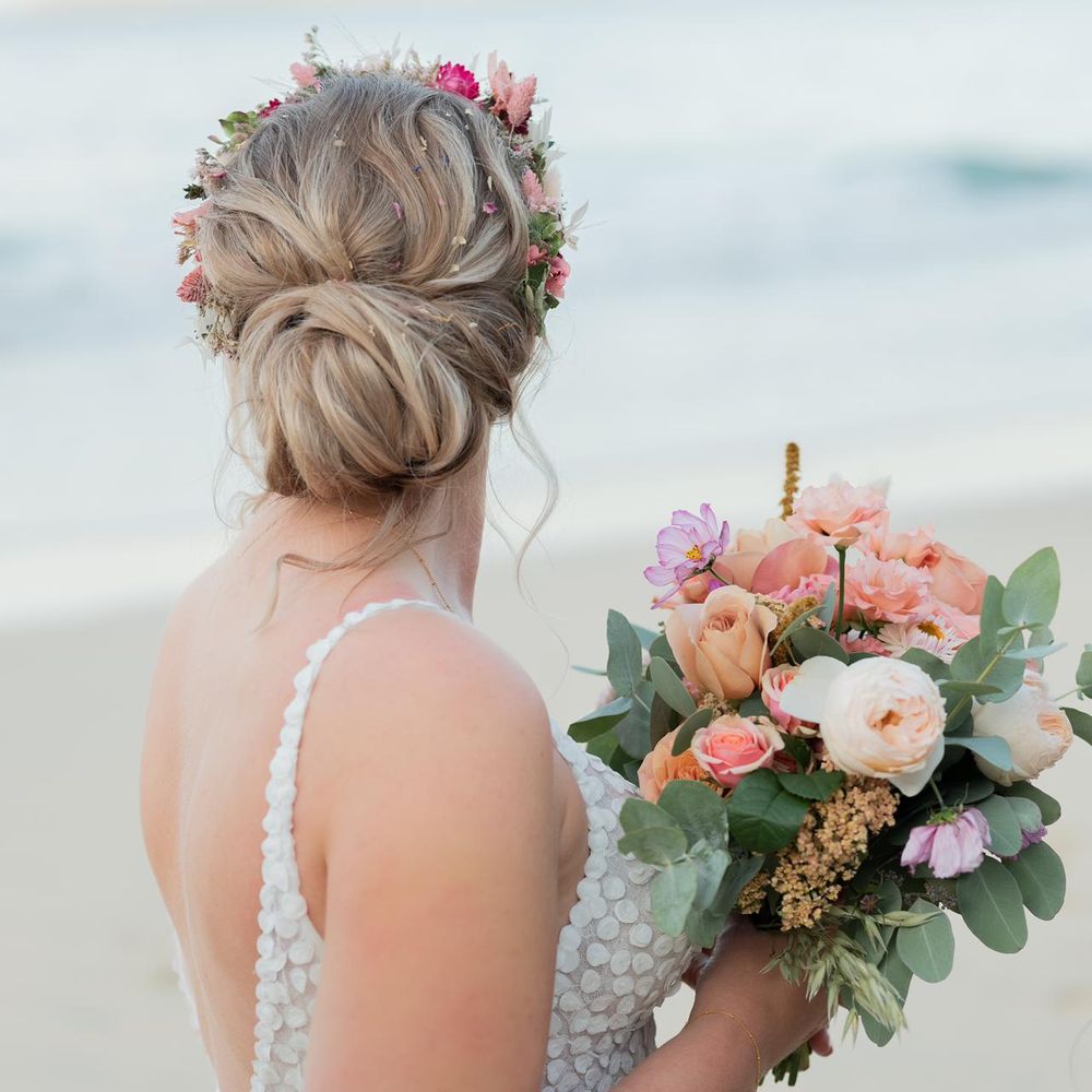 I would highly recommend Melody-Rose. She is so friendly and lovely! I’m a very shy person and she made me relax straight away. I was very nervous but she was so happy and full of excitement. She is extremely professional and I was so happy with the beautiful hair she did for my wedding day. I asked her for a relaxed and wavy hairstyle, perfect for some beach photos and a boho style dress. We travelled to Cornwall and I didn’t have time to have a trial first but this didn’t matter because she did such a lovely job. I was so pleased and happy with the beautiful beachy hair. Thank you so much! xxx