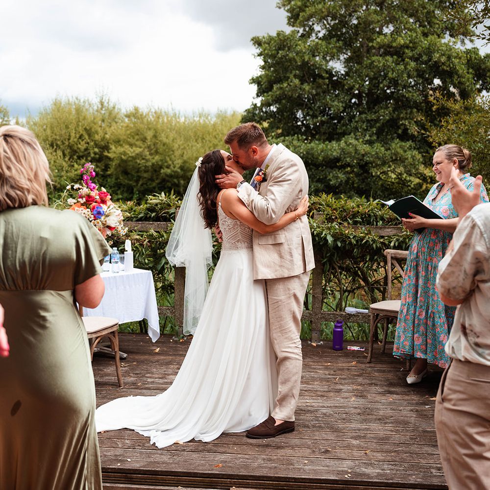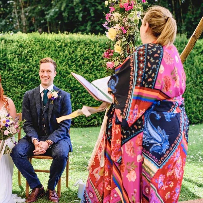 We could not recommend Miranda more. We knew we wanted something different to the usual registrar route, someone that would bring pure joy to out day and Miranda did that and more. From start to finish Miranda was warm, kind and professional. She took the time to get to know us as a couple and crafted it into the most beautiful and funny love story. She held our hand throughout the whole process, helping us to craft the perfect ceremony for us, helped us write our vows, plus so many other incredible wedding top tips!! On the day Miranda was simply a joy, we could not have imagined a more perfect ceremony. Even when the heavens opened miranda was quick on her feet to pivot the plan and make sure we did what we wanted to do before we got soaked! Thank you for making our day perfect Miranda!
