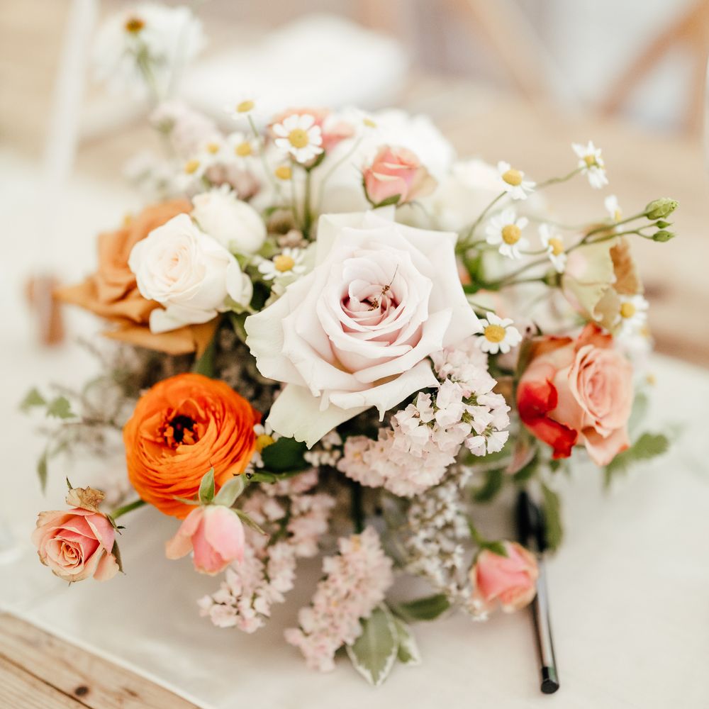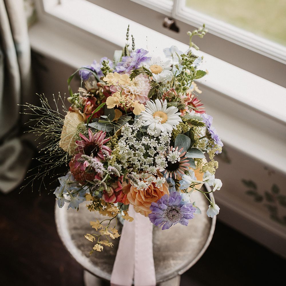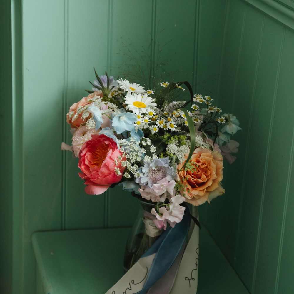 I provide a full flower service which starts with a face to face or Zoom consultation whereby I can get to know about you and your plans. Once we've had a chat, I will provide you with a mood board and flower quotation. A deposit secures your date with me. I can provide all flowers that you would require for your wedding from buttonholes, bouquets, ceremony and venue decoration, table arrangements, flowers for your cake and natural petal confetti. There are no limits to what is possible but equally I do not have a minimum order. Your plans are fluid and will naturally evolve as your day takes shape. On the day your flowers will be delivered to you wherever you are getting ready and venue flowers arranged accordingly.