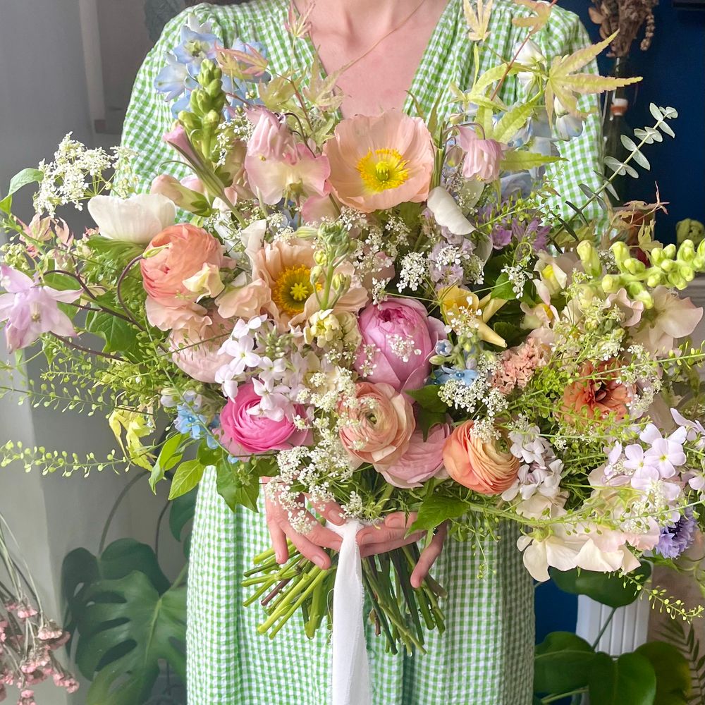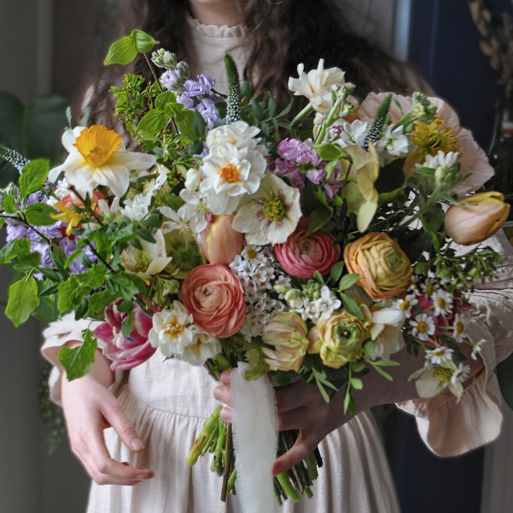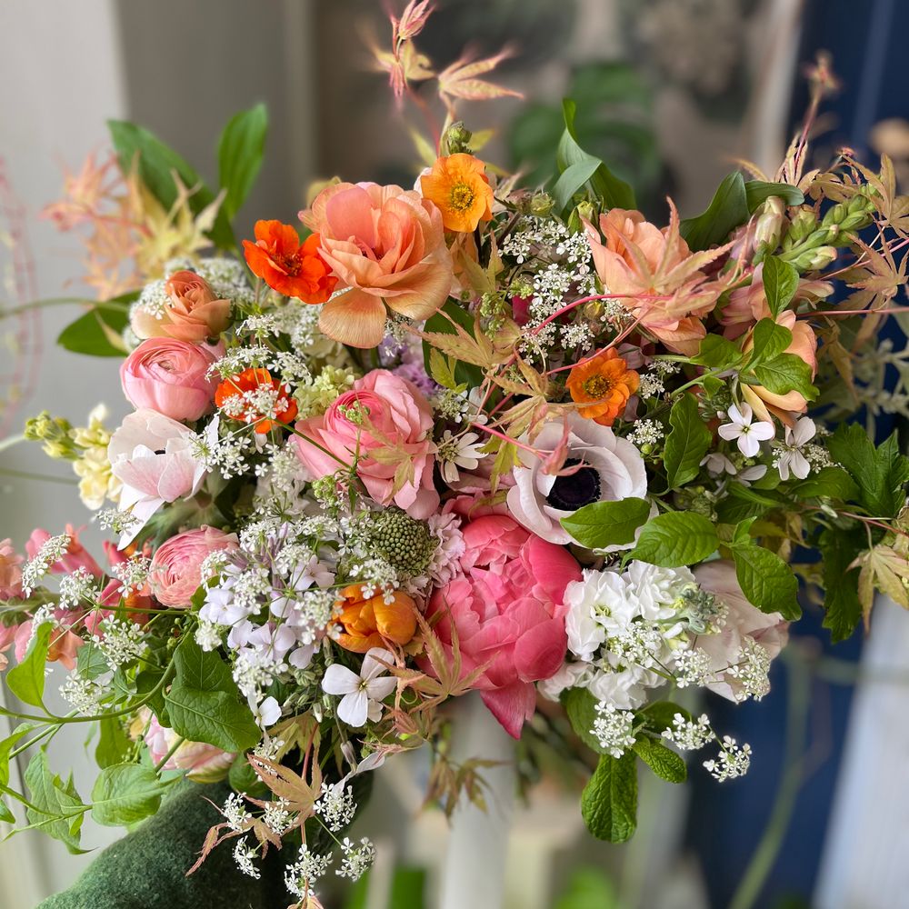 The flowers we use are grown locally, using zero chemicals and zero air miles. We work seasonally and only choose to work with what is blooming naturally from month to month. We also never use floral foam or any single-use plastics. You can read more on our website at- www.mothflorist.com
