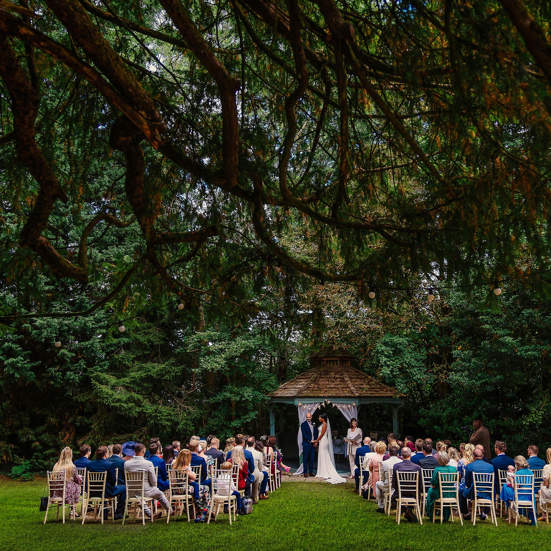 Yes! We have an indoor and outdoor ceremony licence. Whether you choose an outdoor ceremony held in our Garden Pavilion, under the trees using our stunning Grade II listed house as your backdrop, an indoor ceremony in our Orangery, bathed in natural light overlooking the gardens, or a more intimate setting in our Lavender Barn, we really do have the perfect setting to say ‘I do’. If your wish is for a traditional church service, we will welcome you from your ceremony at the front door with a glass of fizz.