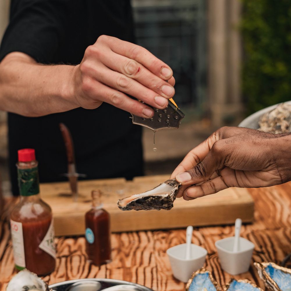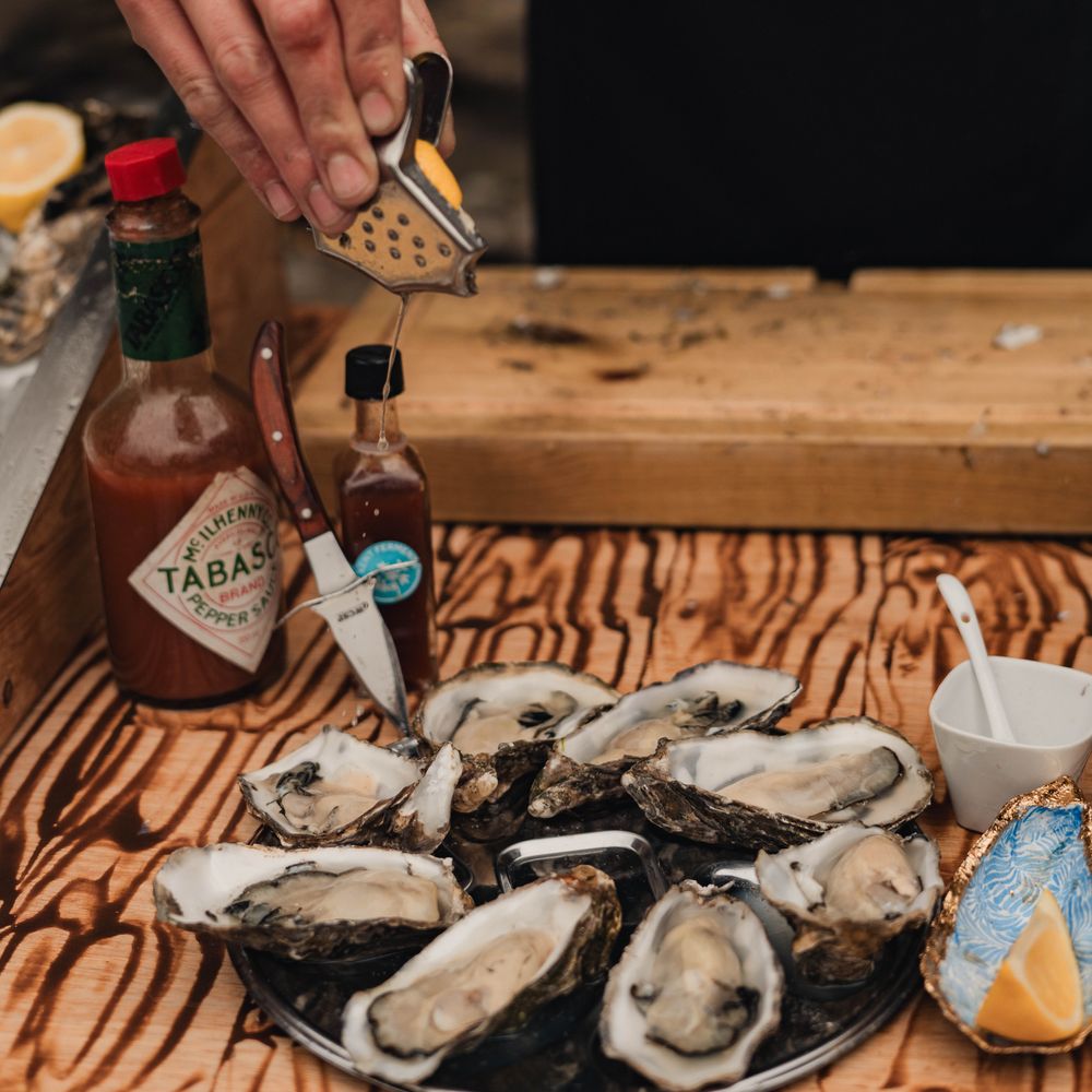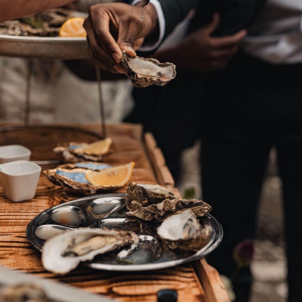 Our mobile oyster bar serves the freshest seafood, whether you choose to enjoy ice cold, freshly shucked oysters on the half shell or garlic butter prawns from our custom made charcoal BBQ. Oyster Buoys was founded with a vision to bring the exceptional flavours of the sea to events while delivering a truly specialised and memorable service. Beyond fresh and barbecued oysters, we offer an array of premium seafood options. From our ice bar, enjoy freshly served selections, or indulge in a full BBQ feast featuring garlic butter BBQ prawns and flavourful seafood skewers. With years of hands-on experience on oyster farms and in the catering industry, we bring unmatched expertise and a passion for creating unforgettable culinary moments. What sets us apart is our deep-rooted knowledge of oyster cultivation, grading, and shucking, paired with a commitment to sustainable sourcing. Our professional shuckers add elegance and sophistication to every occasion, making them perfect for weddings and special events. We work closely with our clients to ensure our menu is customised to meet your needs, so please do enquire if there is something particular you require.