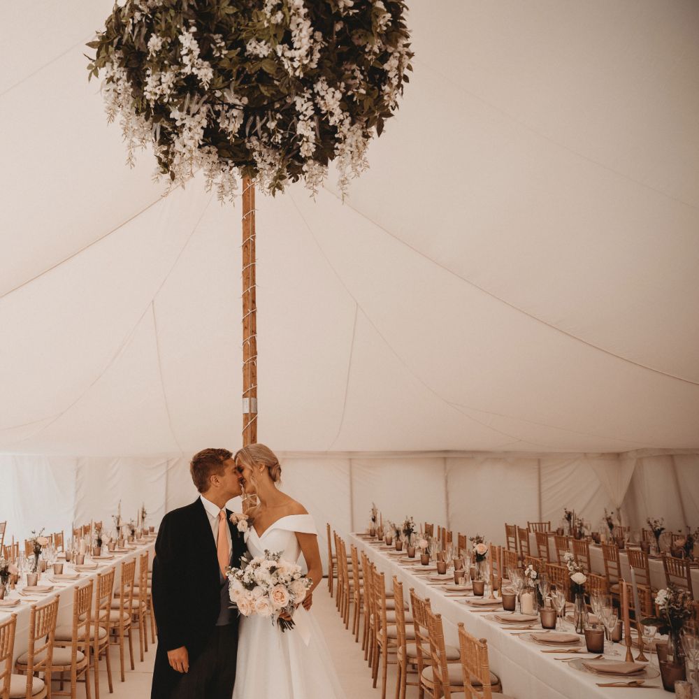 Luxury canvas marquee hire for modern weddings, adored by stylish couples & featured in The Lane, SheerLuxe & Tatler.