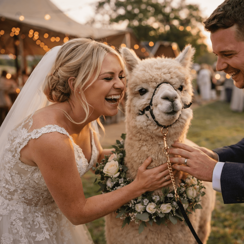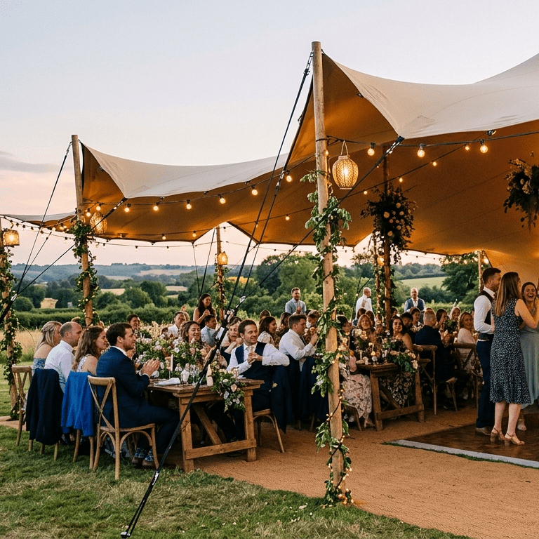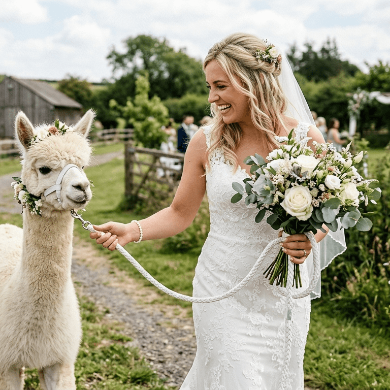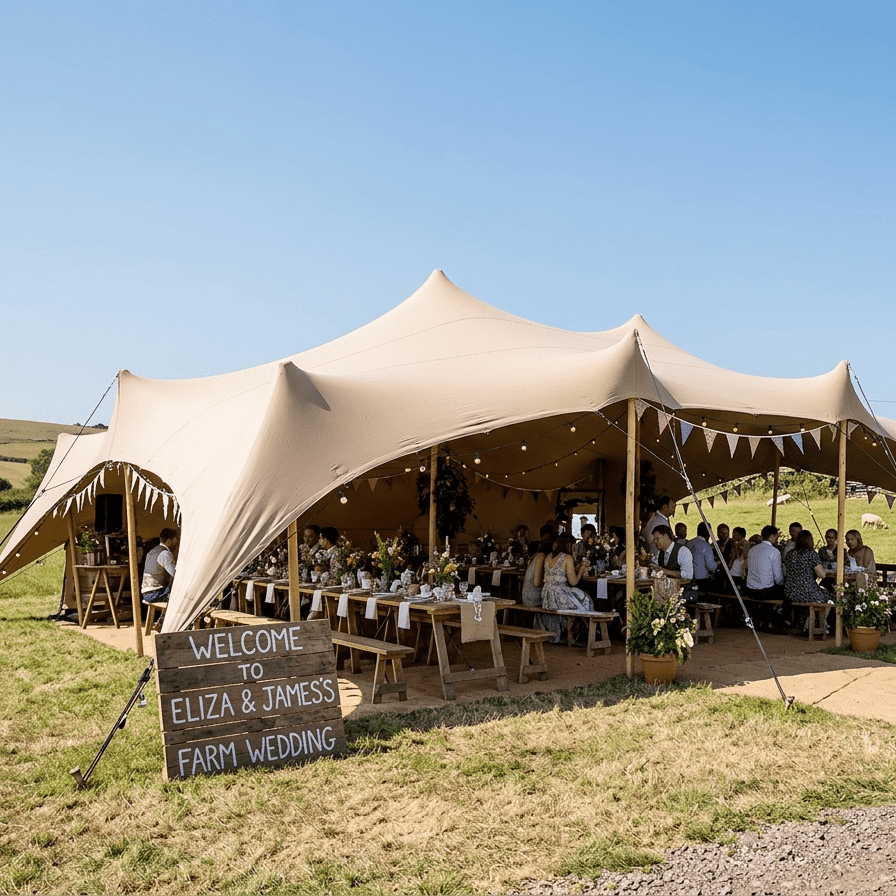 Pocket Alpaca Events create unforgettable outdoor weddings across Devon & the South West. We specialise in stretch tent hire, with lighting, seating and alpaca experiences to make your day truly unique. Friendly, professional service from start to finish. Pocket Alpaca Events specialise in creating unforgettable outdoor weddings across Devon and the South West. We provide stunning stretch tent hire, transforming fields, gardens and unique venues into relaxed yet elegant spaces perfect for celebrations of all sizes. Our stretch tents are versatile, weather-resistant and designed to look incredible when paired with festoon lighting, creating a warm and inviting atmosphere from day through to evening. We also offer bench seating and flooring options to complete the setup. What truly sets us apart is our alpaca experiences, giving couples the opportunity to add something unique and memorable for their guests. We pride ourselves on a friendly, professional service from first enquiry through to setup and collection, working closely with you to ensure everything runs smoothly and looks exactly how you imagined.