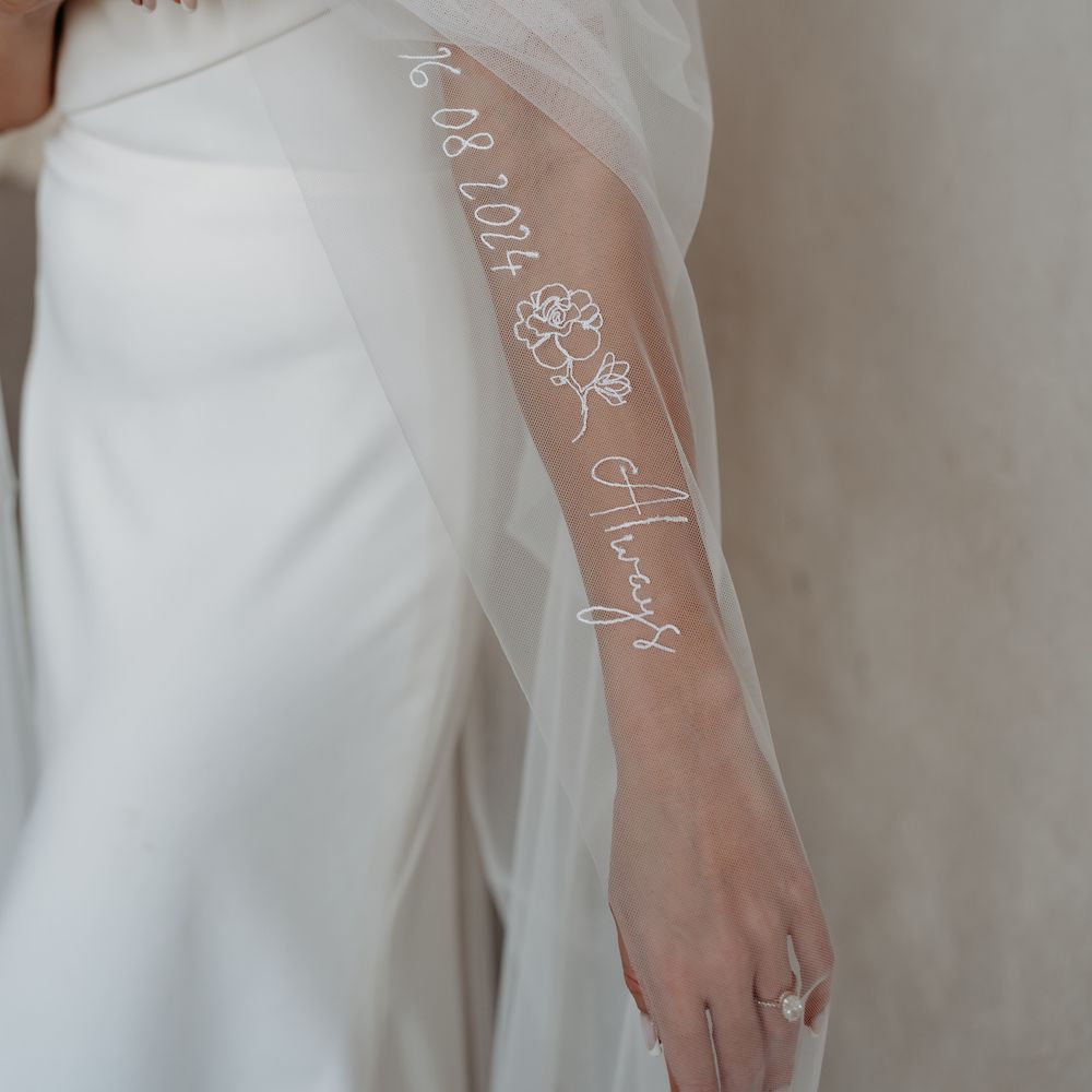 Embroidered wedding veils designed with intention — made to be as personal as your love story. Rebecca Anne Designs creates bespoke and personalised veils from her Devon studio, blending artistry, emotion and modern embroidery to craft heirloom pieces for discerning brides worldwide. For over a decade, Rebecca Anne Designs has been creating embroidered wedding veils that celebrate individuality, artistry and emotion. Each veil begins as a hand-drawn design, reimagined through precise digital embroidery to create a one-of-a-kind piece that feels deeply personal. Working one-to-one with every bride, Rebecca designs veils that capture meaningful details — from initials and dates to poetry, florals and celestial motifs. Every stitch tells a story, creating a wearable heirloom that feels effortlessly modern yet timeless in sentiment. All veils are made to order in Rebecca’s Devon studio, where modern needlework meets luxury tulle and considered design. Alongside veils, Rebecca also offers embroidered wedding signage, bringing the same elegant detail and personal touch to your day. Each creation embodies care, precision and romance — designed with intention, made to be treasured.