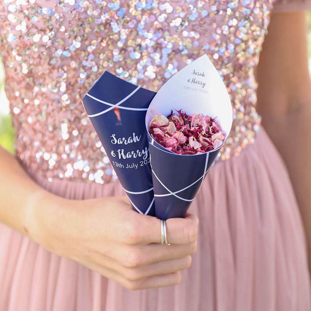 Our petals come in a delightful array of colours and blends, offering a unique and beautiful touch to your special day. Request up to 5 confetti samples delivered to your home to help you choose. Create your own mix with our confetti Pick & Mix online.