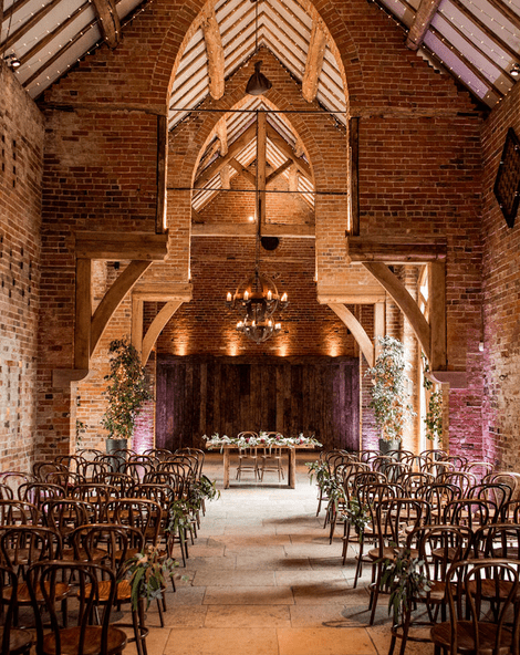 Set in the rural heart of the Warwickshire countryside, this collection of magnificent redbrick 18th-century barns provides a sensational setting for your wedding. The barns surround a beautiful courtyard with ancient olive trees and fire pits, as well as an outside BBQ.