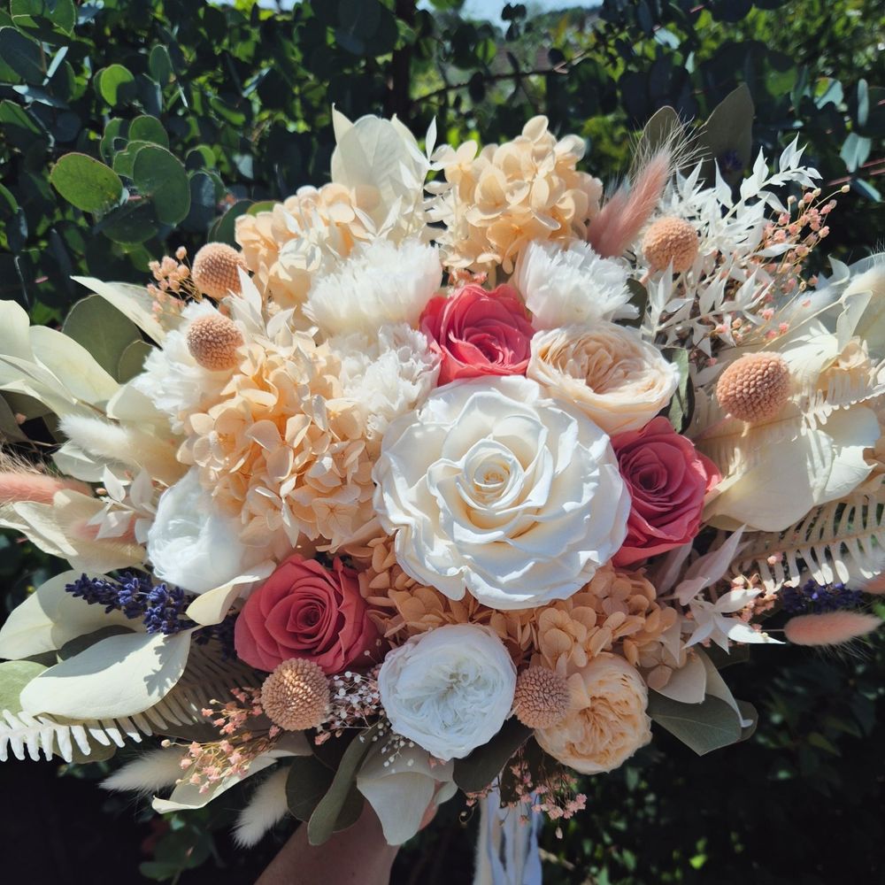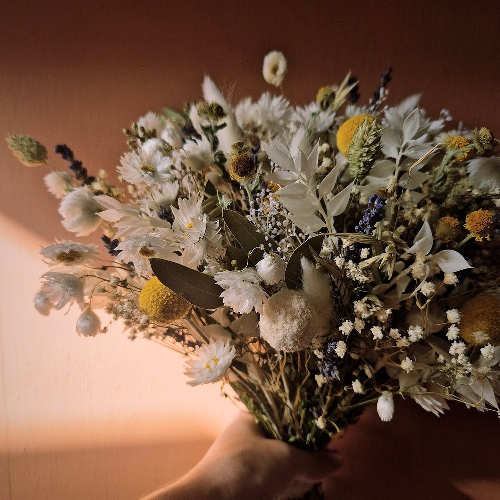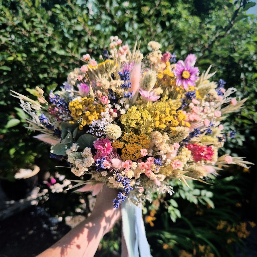 'When I decided to have dried flowers for my Spring wedding, I knew I wanted to keep the connection to my new home in Wales. My research led me to Chloe, and I’m so happy it did. After my first chat with her, I knew I’d made the right choice. Her knowledge of flowers meant that she took my descriptions of what was in the head and turned them into a more beautiful reality than I could ever have envisioned. She kept me informed along the way, and even when I made small changes, she was so patient. When I saw what she’d created, they were nothing short of magical ✨ and we get to keep them forever! I cannot thank Chloe enough for creating us the most perfect wedding flowers imaginable.'