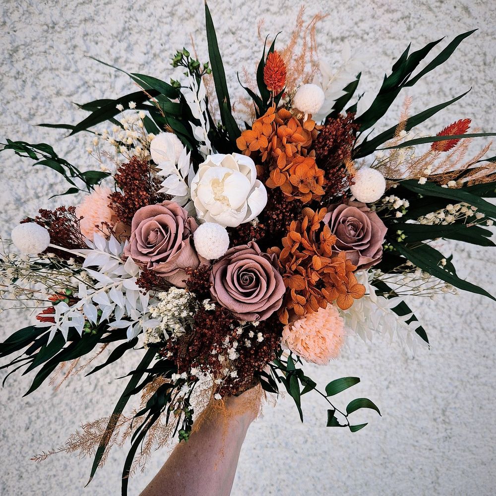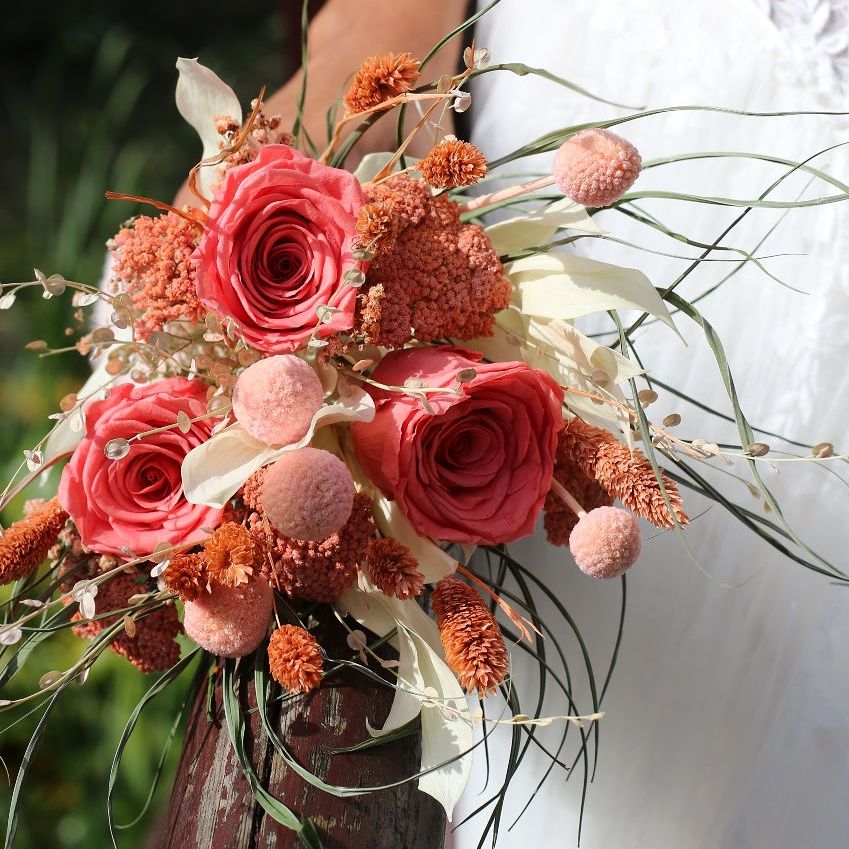 'I couldn't be more thrilled with my bridal bouquet and six bridesmaid's posies, in addition to a flower girl crown. Chloe is a joy to work with - she absolutely nailed the brief of our autumnal tones wedding, with a rustic vibe. A friend told me 'my bridal floral arrangement was me as a bouquet!' Chloe even used some honesty from my aunt's garden. I was updated throughout the process. I knew Chloe was talented, but the final bouquets surpassed expectations. The best thing about choosing a dried flower bouquet is that I get to keep it and admire it daily.'