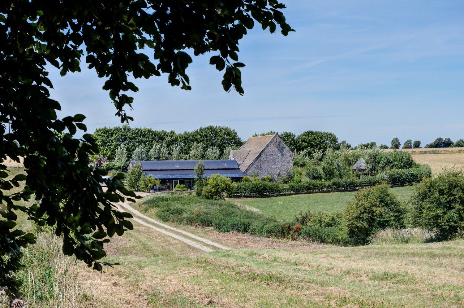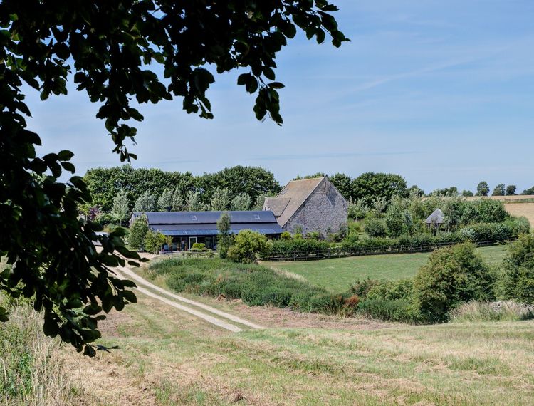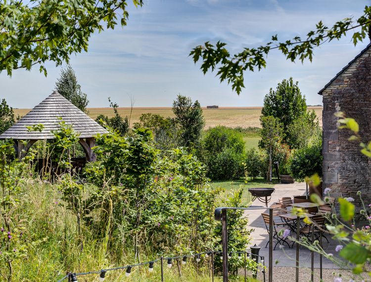 Located in the heart of the Cotswolds, this historic stone barn and adjoining Dutch barns have roaring fires, an open kitchen with a giant indoor BBQ and sweeping views over the surrounding landscape.