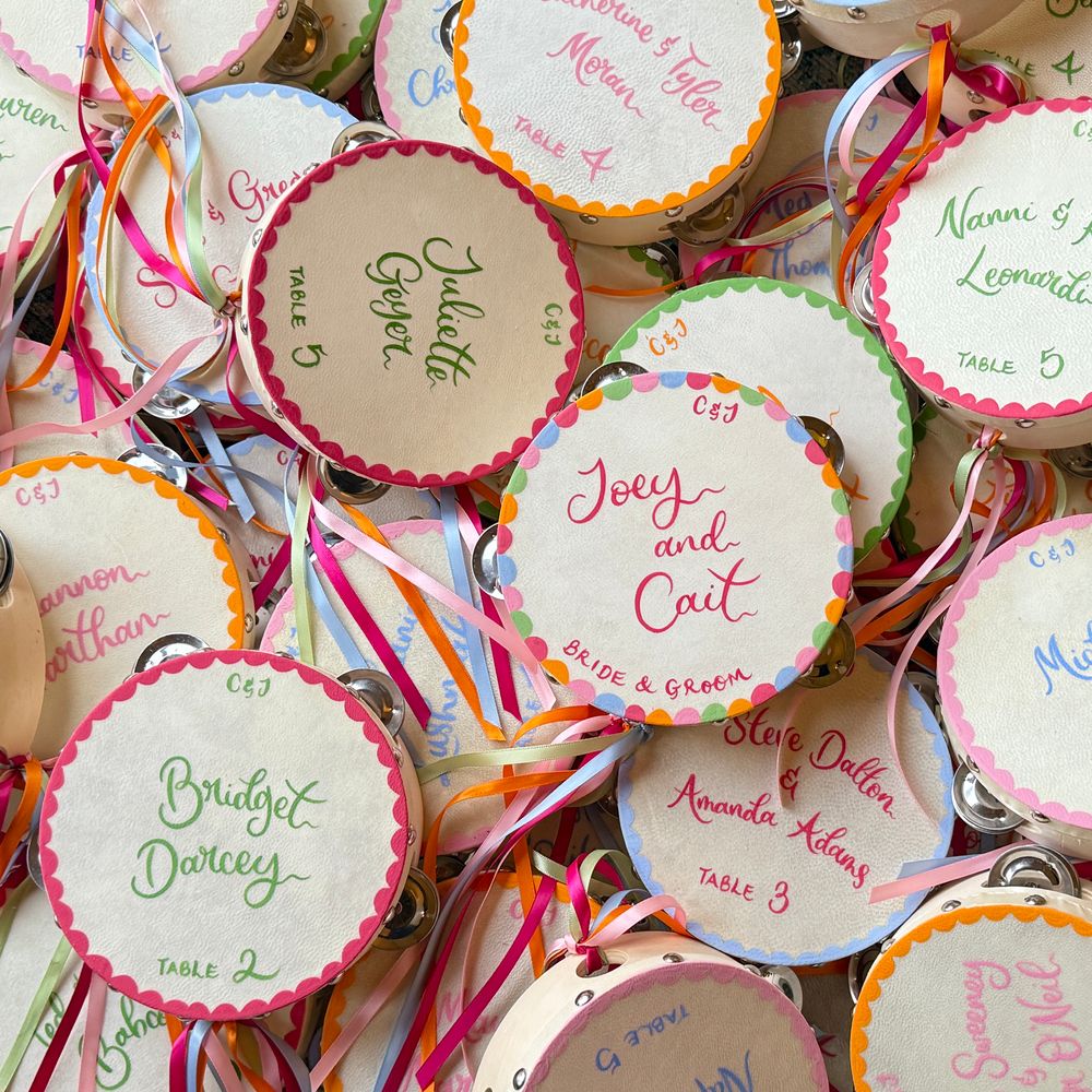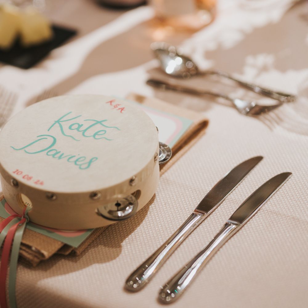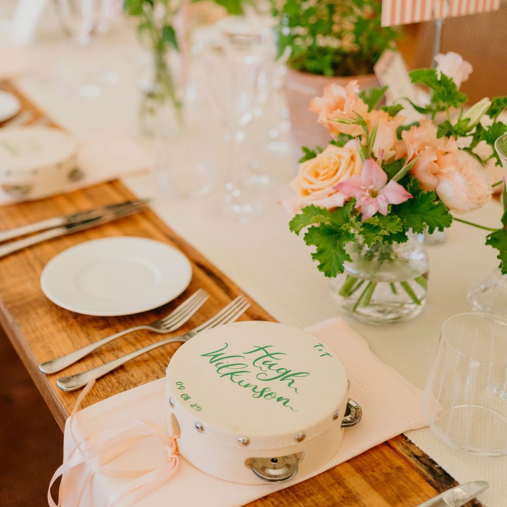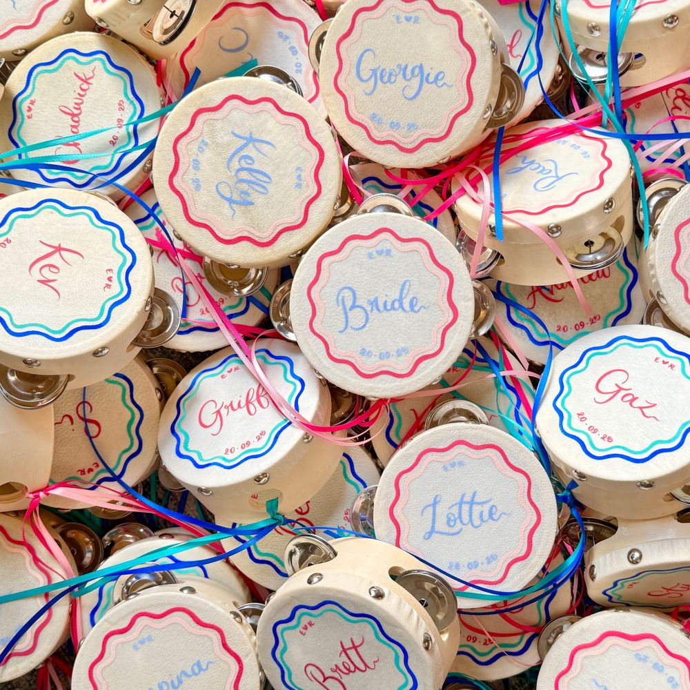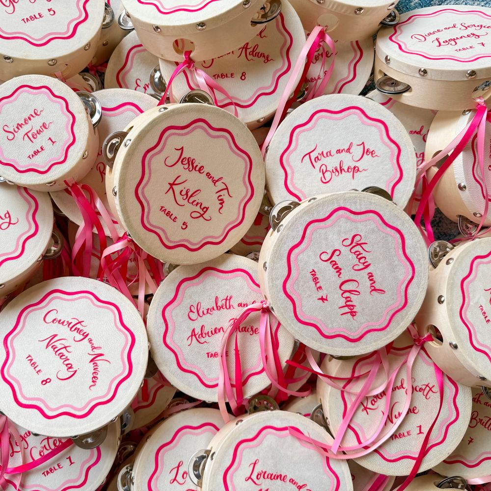 A fabulous touch to our special day. Cathy-Ann was incredible throughout and even hand-delivered all our wedding stationery. Our guests loved the fun of the tambourines and they still sit proudly over our fireplace at home. Everything was totally bespoke and nothing was too small or big to tweak to make it 'perfect'. We are beyond delighted with how it all turned out. High quality, eye-catching and everything we could have wished for. I cannot recommend Studio Joy/Cathy-Ann more highly. It was a joy from start to finish and I can't wait to use her again and again. I am so happy, thank you from the bottom of our hearts!
