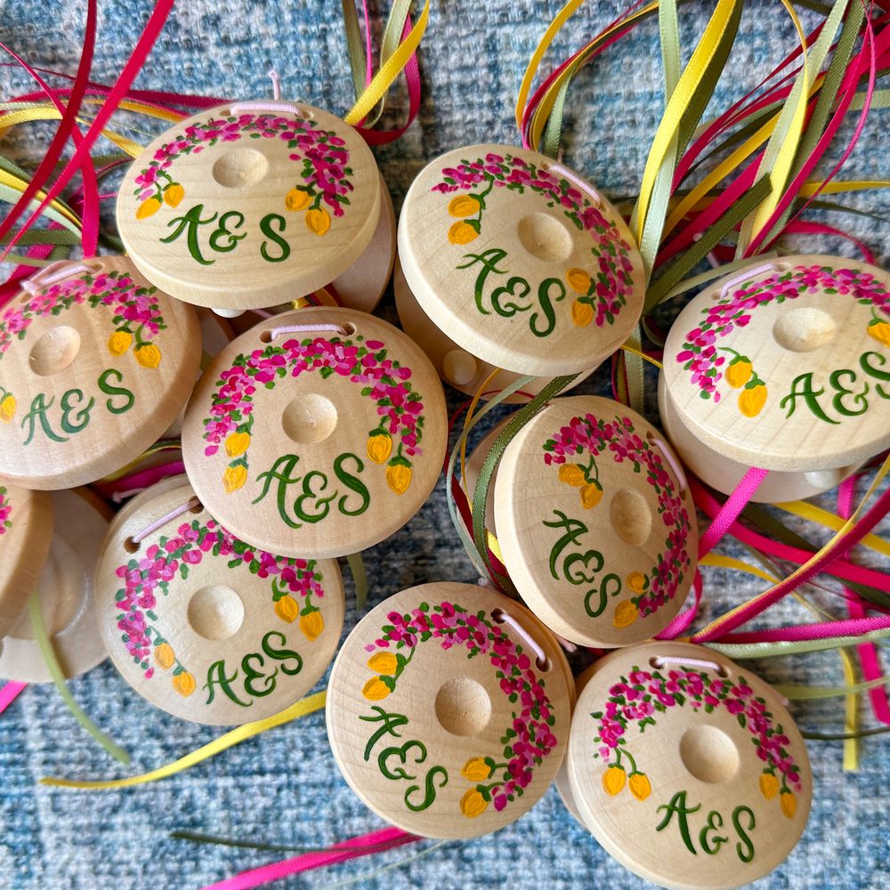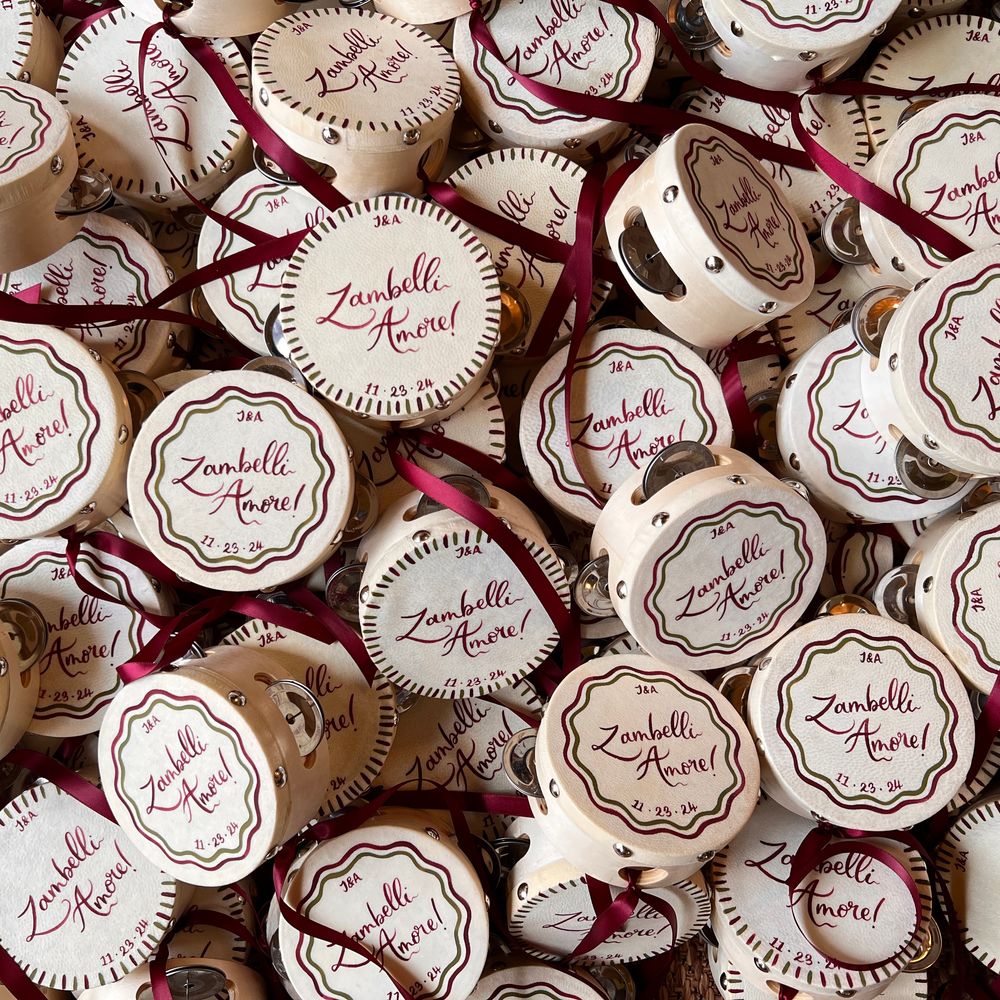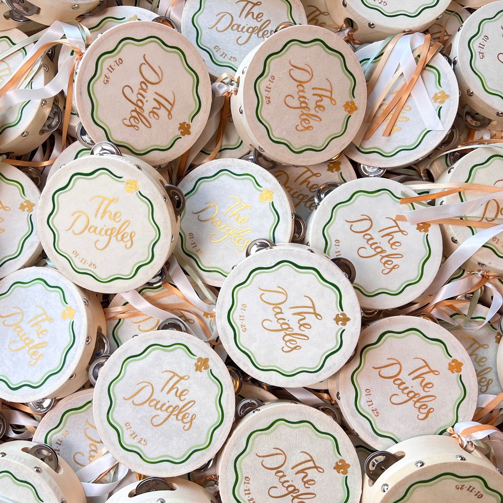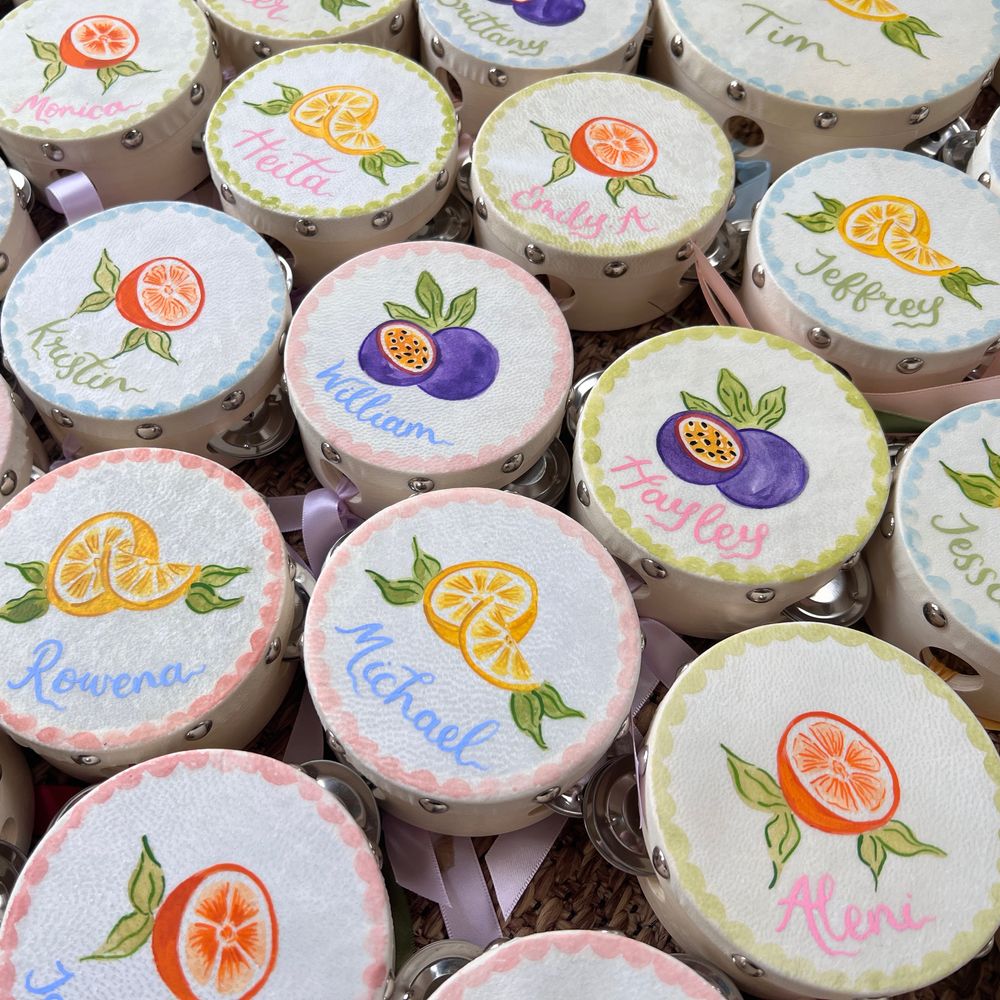 Cathy-Ann was such a dream to work with on the tambourines for our youngest guests! She was consistent in her communication throughout and followed up with us at every stage of the process: from initial consult, to brainstorm and sketching, to final design and finishing touches. They were a hit at our wedding with both young and old! Thank you, Cathy-Ann, for creating a wonderful memory for our little guests.