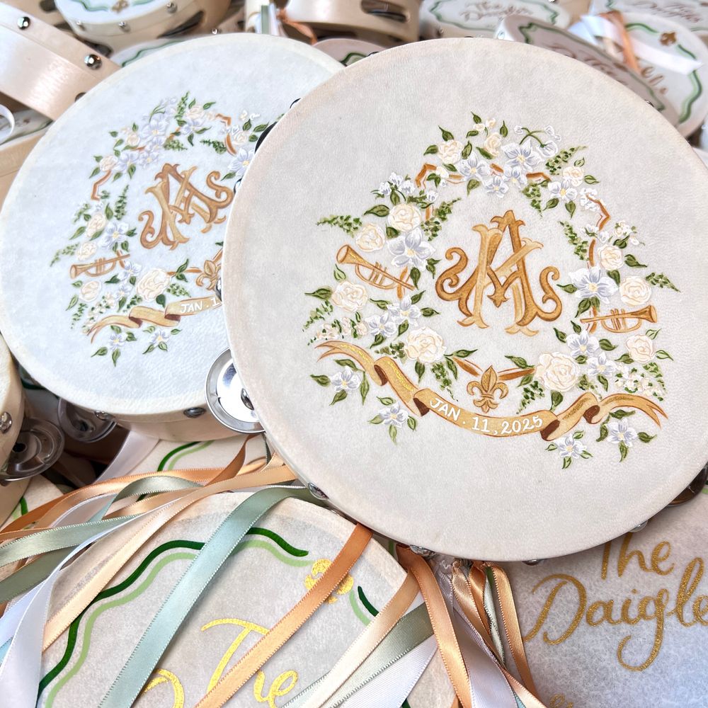We cannot say enough good things about working with Cathy-Ann on our wedding graphics and tambourines! We had a fairly tight timeline for graphic design but Cathy-Ann took what we currently had, combined it with our inspiration and what we were looking to accomplish and put together, printed and painted really beautiful work for us in an incredibly short timeline. She was incredibly responsive, easy to work with and just understood us and what we wanted! Everything was done meticulously and sent to us on time and it quickly became one of our favorite parts of the process receiving the different mockups. Our guests absolutely RAVED about the designs and the tambourines - a lot of them have them hanging up in their homes today! We cannot recommend working with her enough!!!!