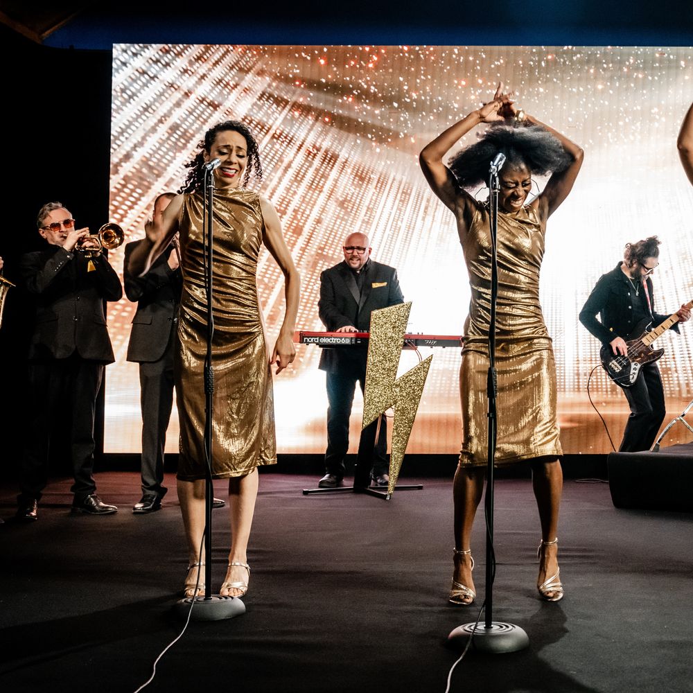 The Goldiggers are the UK & Europe’s ultimate party band! We present a world class show with hit after hit from the 1960's right up to the present day. Featuring a razor sharp band and flawless dynamic vocals, we are the band to make your party really fly! We are a collective of superb, internationally renowned session musicians who have toured globally. Gracing stages from festivals to sold-out arenas, and playing with an illuminati of artists such as Goldfrapp, Celine Dion, Kylie Minogue, Avril Lavigne, Nick Cave, Siouxsie Sioux, Kasabian, Robert Plant and Tears for Fears. We have passion, chemistry, musical precision & showmanship that we guarantee will ignite every celebration! The Goldiggers are available as a 4-piece band up to a 10-piece ensemble, featuring 3 female vocalists, drums, bass, guitar, keyboards, and saxophone, with additional horn and percussion options. We can also put together a bespoke top quality lineup of bands & DJs to suit your requirements. We can make the show as lavish and extravagant as you wish - the only limit is your imagination!