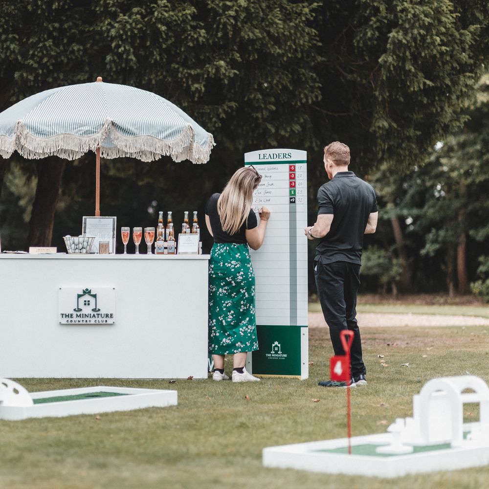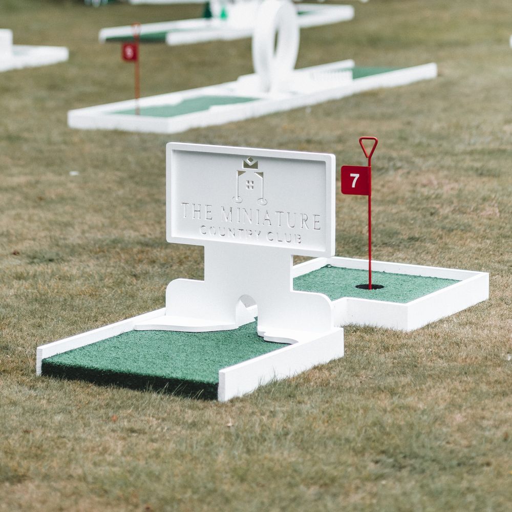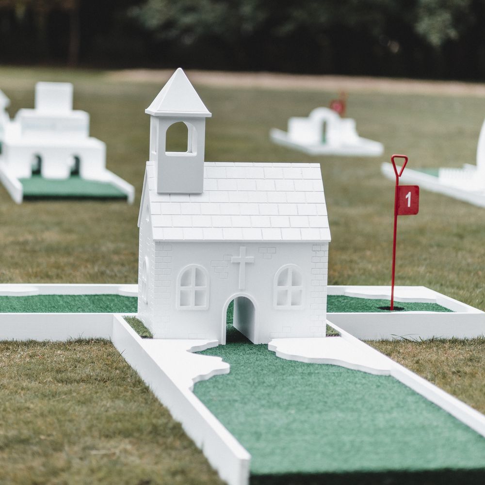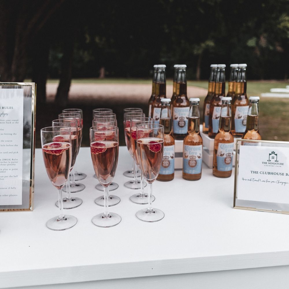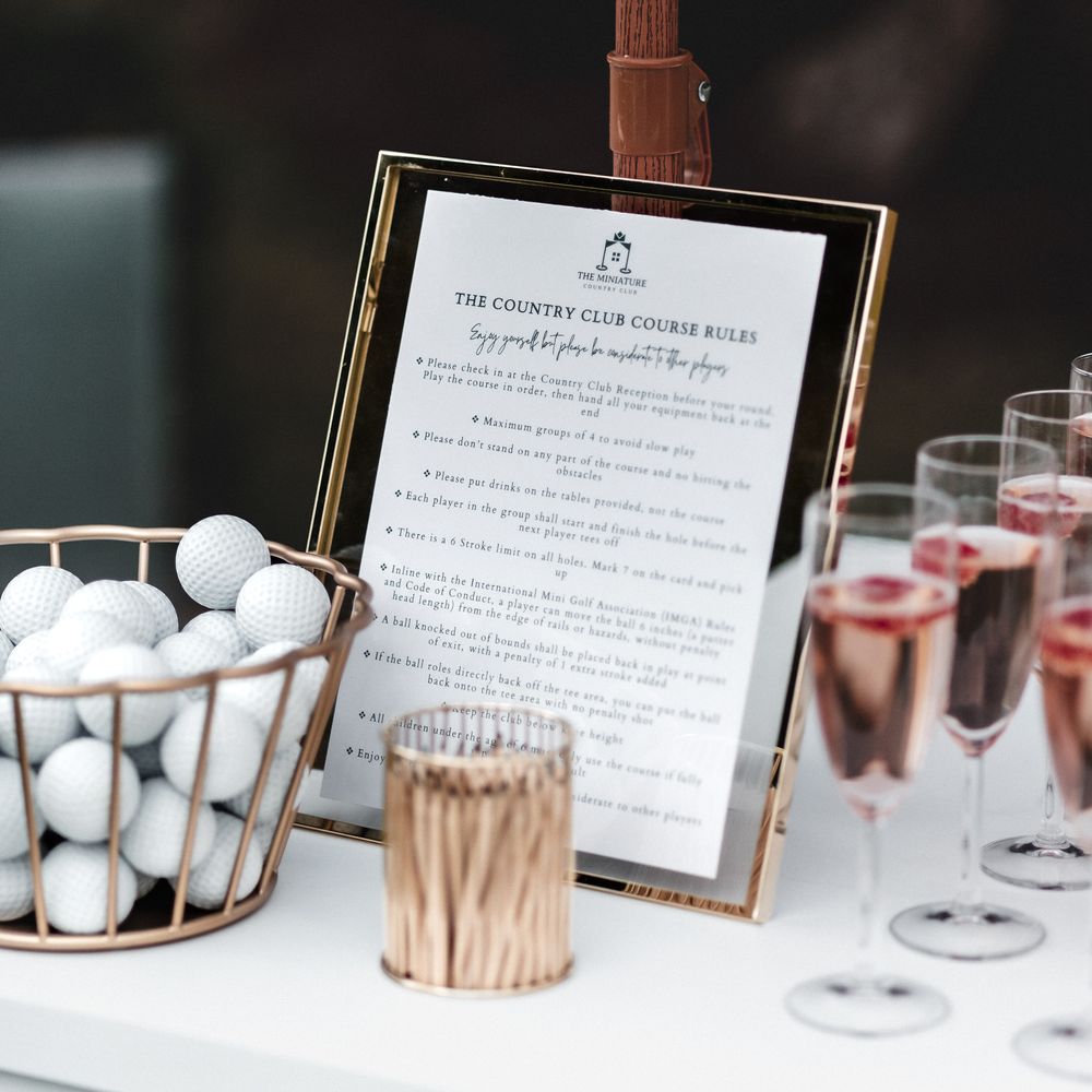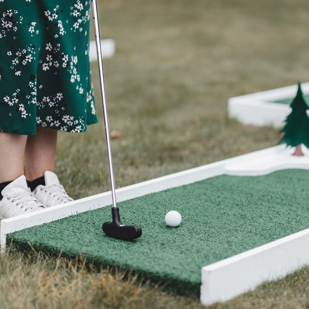 Elevate your drinks reception with our sophisticated Miniature Golf Course and Garden Games for the stylish bride, groom and avid golfer. Your guests will be enamoured with our interactive course and tournament; bringing them together to enjoy some competitive fun. Welcome to The Miniature Country Club, a stylish and elegant mini golf course; bringing unforgettable moments and class to your wedding day. Every element has been thought through so that you get the best experience. We have designed every single one of our signature holes with the avid golfer in mind, bringing together functionality and sophistication. We have also integrated Croquet and Garden Games into The Country Club. The Croquet set is premium quality and really brings that next level of luxury to your day. Pair that alongside 5 ft tumble tower, boules, Cornhole and Connect Four and your guests will be entertained for hours. We will welcome your guests at the Country Club Check In, hosted by our staff, and serve your reception drinks from our Bar if requested. Worried about the weather? Our course can also go inside! With multiple packages on offer and the opportunity to go bespoke for the ultimate soirée, we simply cannot wait to hear from you x