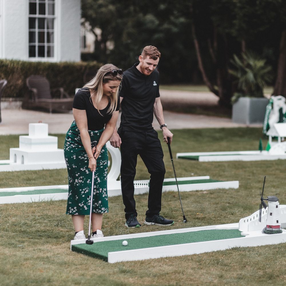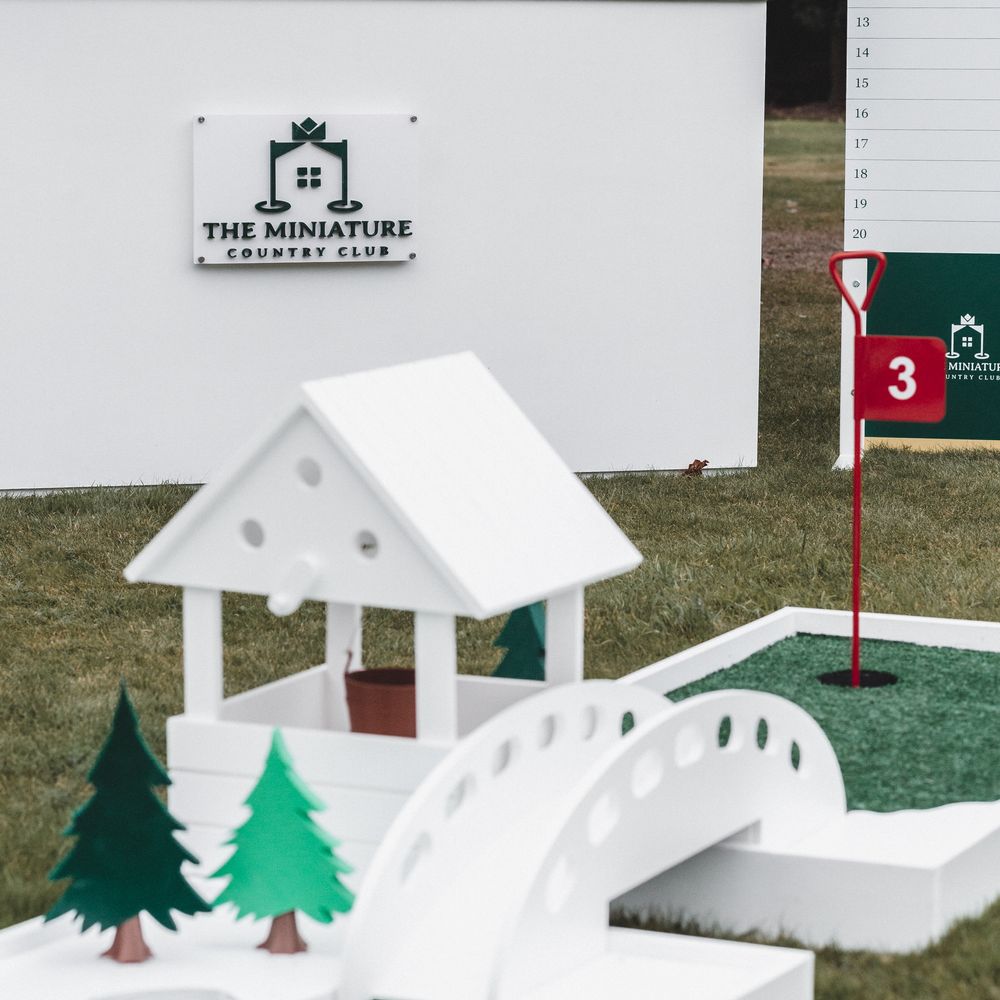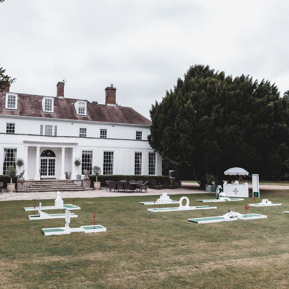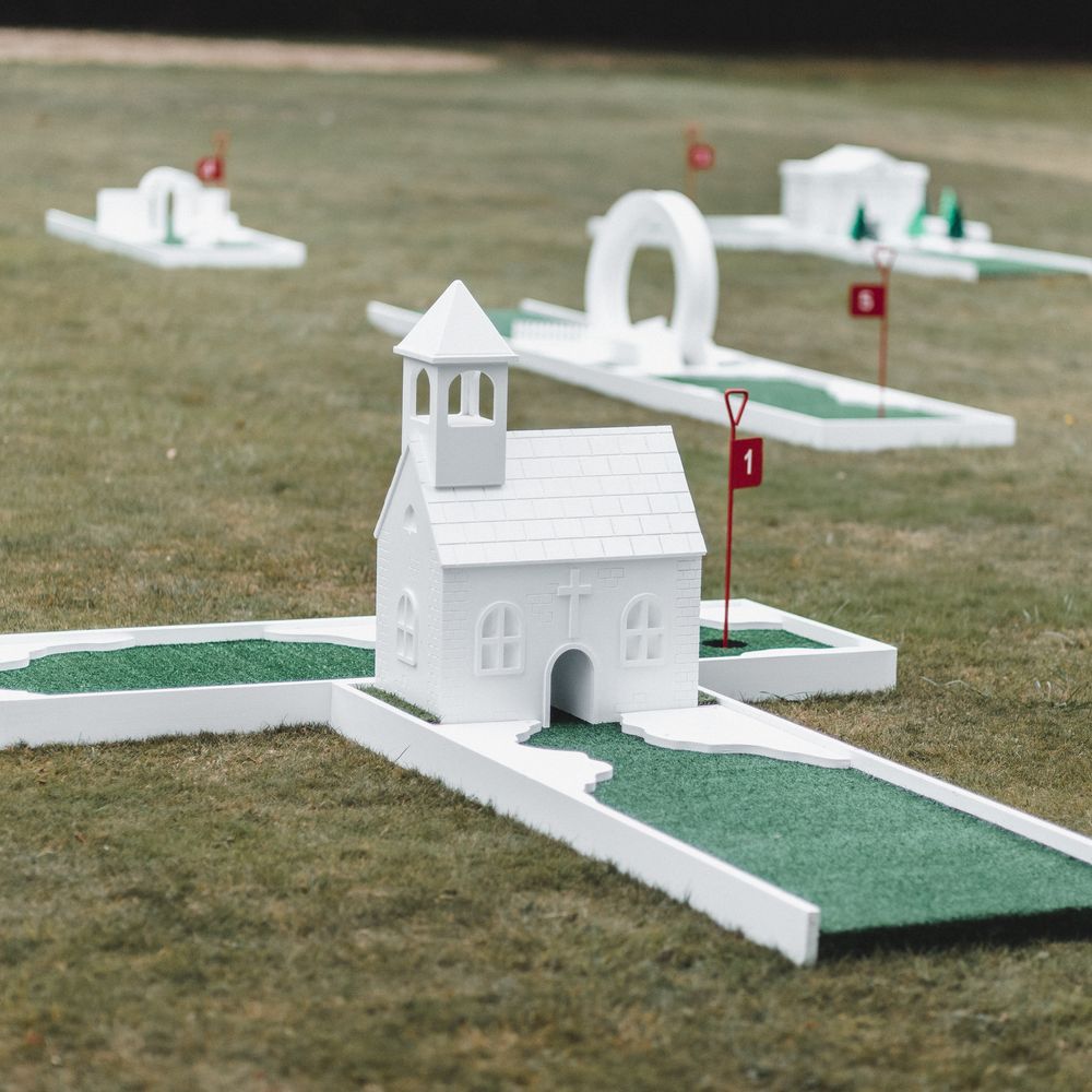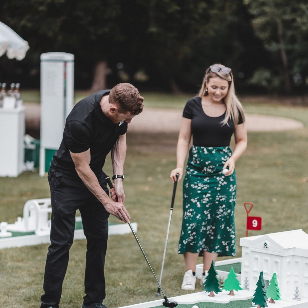 Elevate your drinks reception with our sophisticated Miniature Golf Course and Garden Games for the stylish bride, groom and avid golfer. Your guests will be enamoured with our interactive course and tournament; bringing them together to enjoy some competitive fun. Welcome to The Miniature Country Club, a stylish and elegant mini golf course; bringing unforgettable moments and class to your wedding day. Every element has been thought through so that you get the best experience. We have designed every single one of our signature holes with the avid golfer in mind, bringing together functionality and sophistication. We have also integrated Croquet and Garden Games into The Country Club. The Croquet set is premium quality and really brings that next level of luxury to your day. Pair that alongside 5 ft tumble tower, boules, Cornhole and Connect Four and your guests will be entertained for hours. We will welcome your guests at the Country Club Check In, hosted by our staff, and serve your reception drinks from our Bar if requested. Worried about the weather? Our course can also go inside! With multiple packages on offer and the opportunity to go bespoke for the ultimate soirée, we simply cannot wait to hear from you x