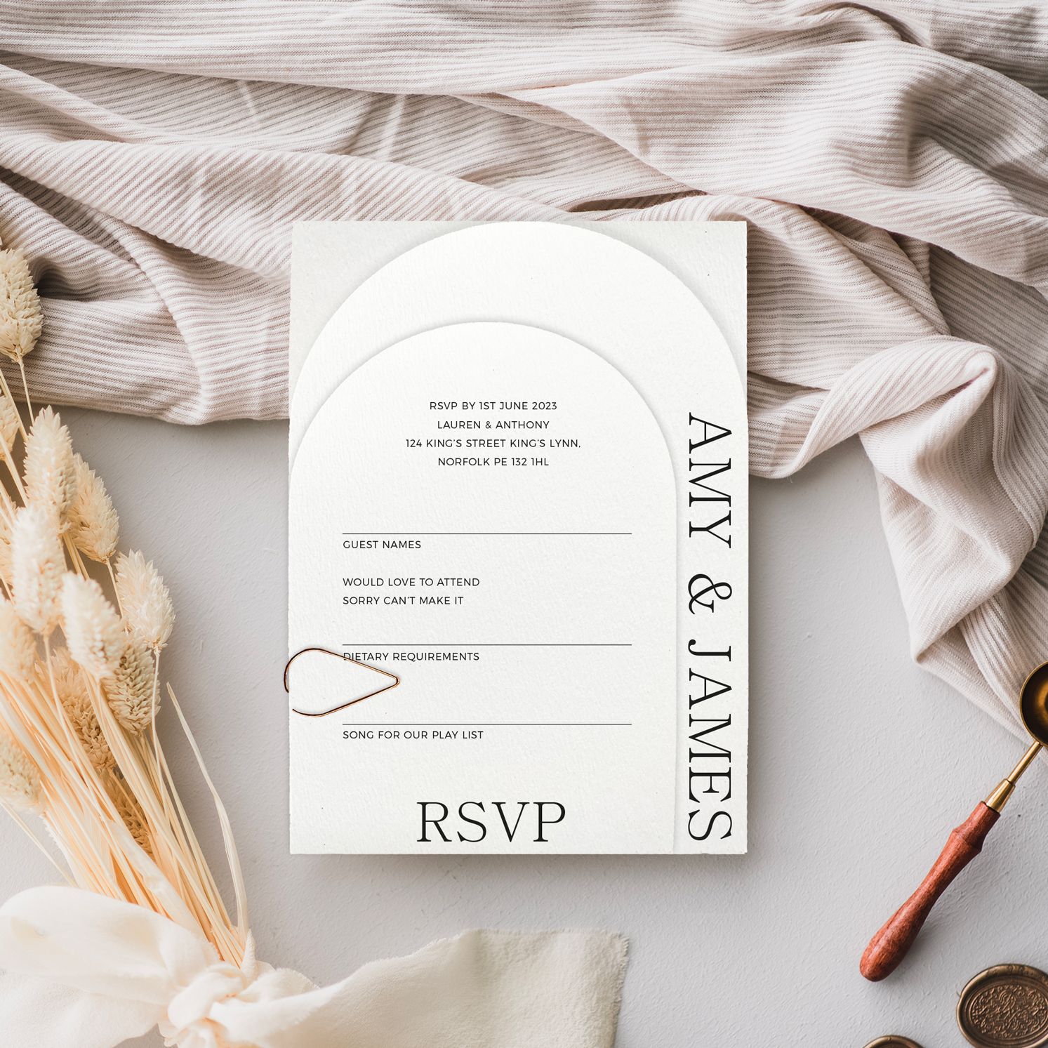 Deposits are required to secure your design slot, once received we can proceed with the designing of your chosen stationery. We will send you a digital proof to check and approve and any amendments to be made. Once approved the final balance is due before your items are sent to print