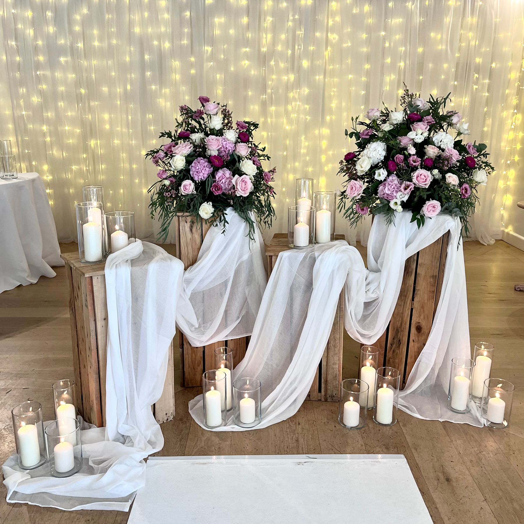 This is a very tricky question to answer as every wedding is different. Prices can differ from the colours chosen to the flowers picked. The best thing to do is come up with a budget you would ideally like to stick with and then meet your florist and discuss options. As we are here to help you and can come up with options that could be more within your budget.