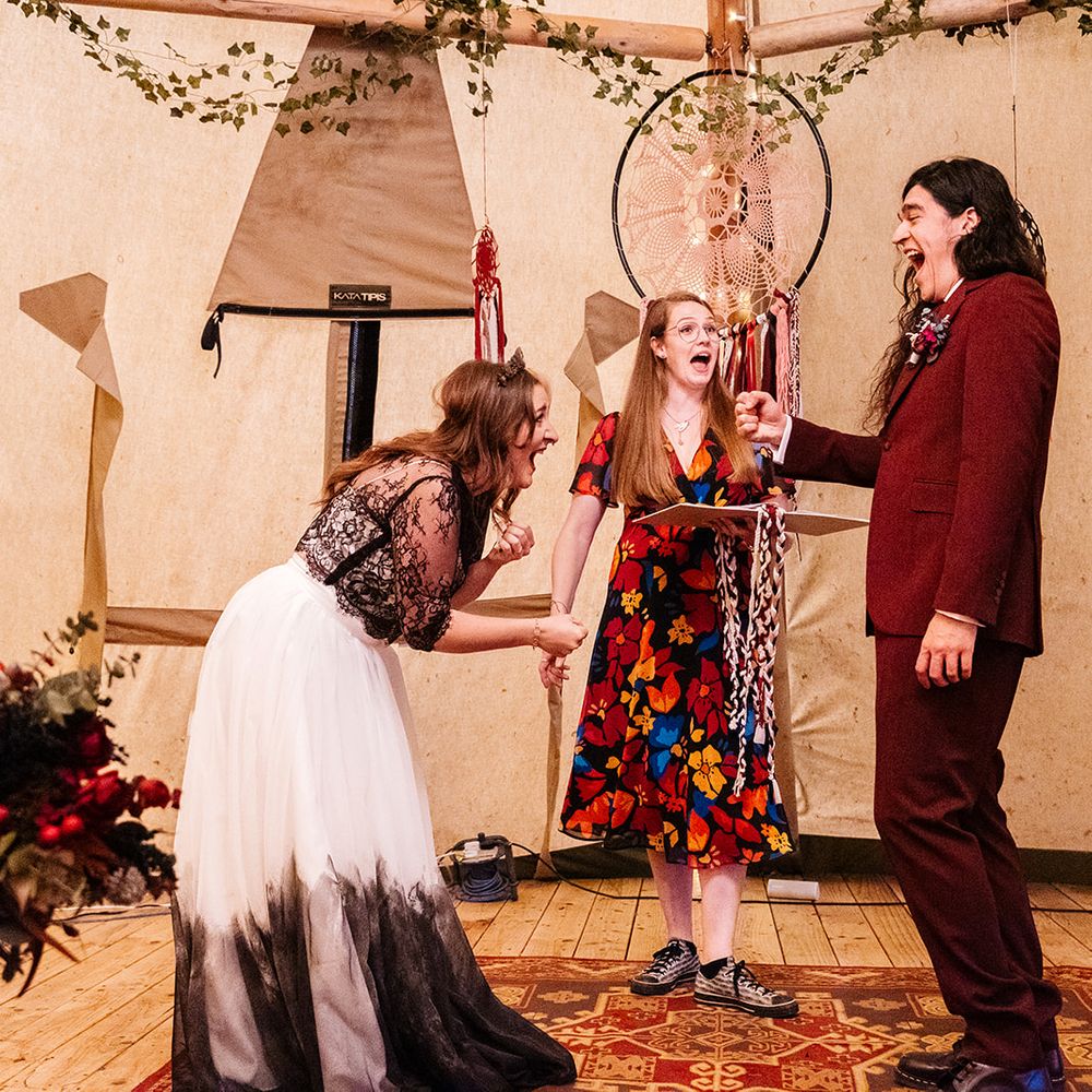 WOW! What can we say! Connie was just PERFECT for our wedding ceremony - she had exactly the vibe we were looking for - someone a little bit unique, open, funny and a master with words to complement our own unique ways and pull off the ceremony we wanted with wit and wonder! All of our guests have said how brilliant the ceremony was and completely different to anything they’d seen before. So HUGE thanks to Connie for suggesting we write our own vows and for embracing our 32 ribbon handfasting and our jump the broom finale! You were the perfect choice and we can’t recommend you highly enough!