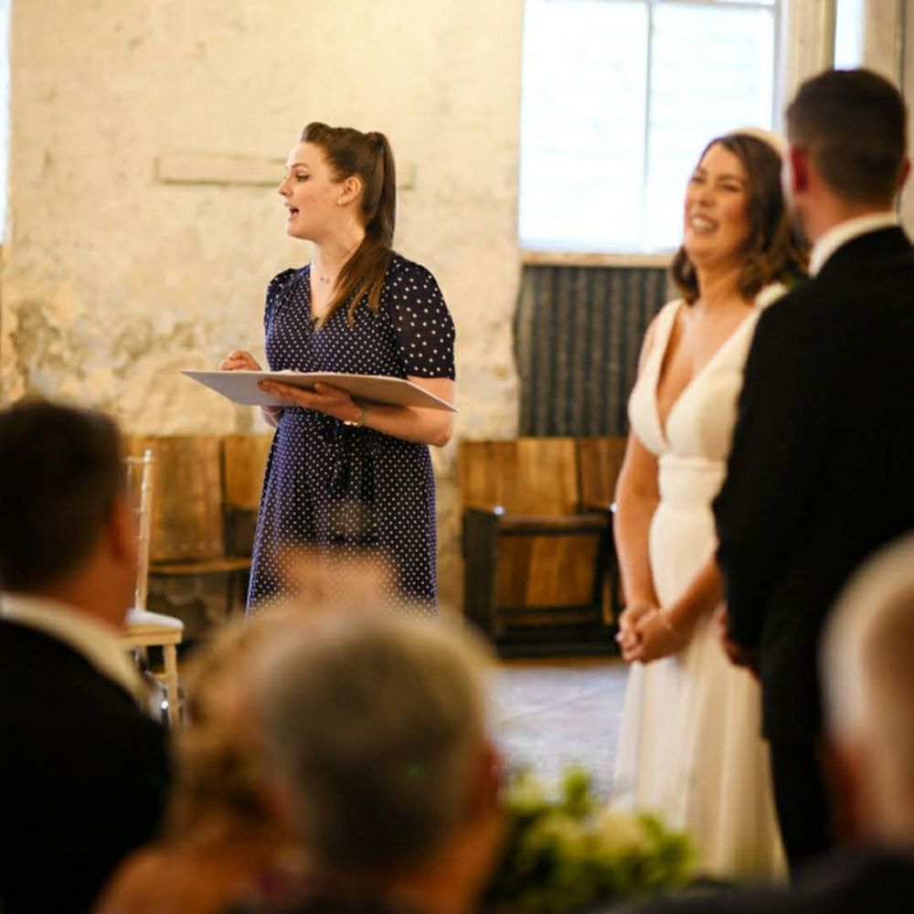 Booking Connie for our wedding was the best thing we did. From meeting her for the first time to having a dance with her in the evening, we felt so at ease with her. The effort she goes to of getting to know couples really shows in her writing. We loved sharing our story with her. She managed to capture our relationship perfectly. We took her advice and wrote our own vows which I highly recommend. Every single one of our guests have commented on how great she was and how personal our wedding was. She is an incredibly warm person who brought the exact vibe we wanted to the day. She is the perfect balance of professional and fun! We also really appreciated her attention to detail and cool head on the day. Honestly can't recommend her enough. After being to a few celebrant weddings I can't understand why you would want a registrar! Book her, we promise you won't regret it. Thank you Connie for making our wedding perfect.