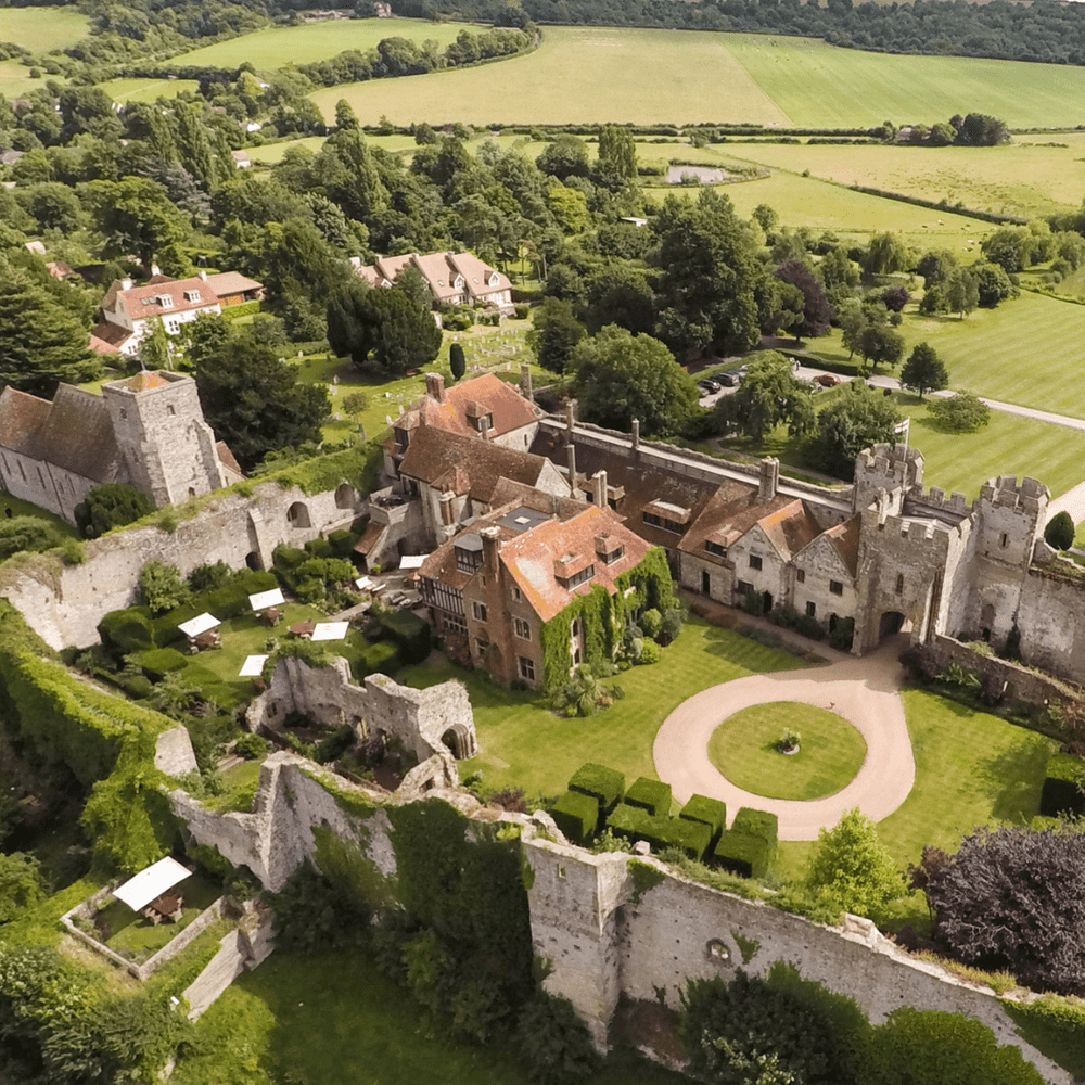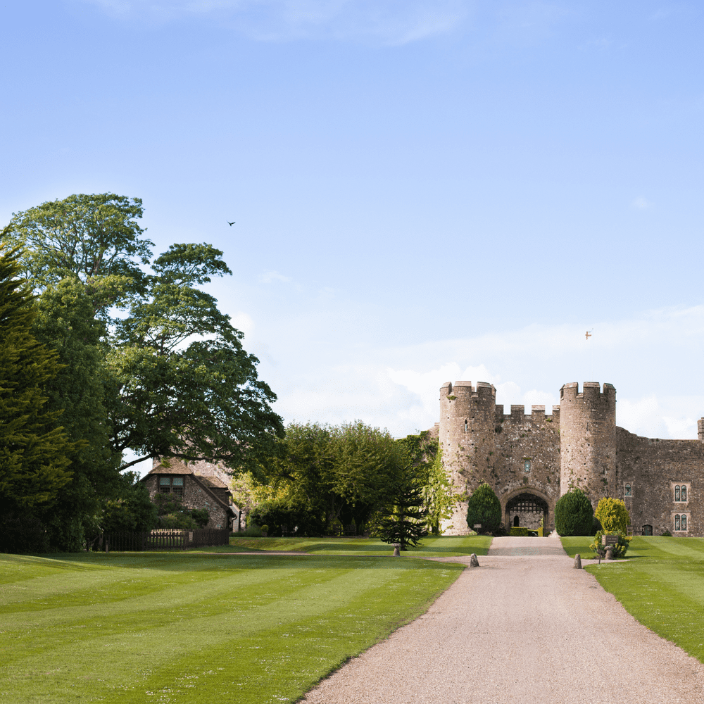 Nestled behind a portcullis, Amberley Castle offers a magical setting steeped in 900 years of history. With stunning gardens, medieval stonework, and rich interiors, this unique venue promises a truly unforgettable wedding day on the edge of the South Downs. Located in the picturesque village of Amberley in the beautiful West Sussex countryside, Amberley Castle is a unique luxury hotel steeped in over 900 years of history. Within its medieval walls lies a picturesque retreat which seamlessly blends ancient architecture and history with modern design and contemporary cuisine, cooked to the highest standards. Amberley Castle is located less than 60 miles south west of London and only 22 miles from Brighton in the village of Amberley. The castle is still completely enclosed by a 60ft high curtain wall, which is flanked by a magnificent twin-tower gatehouse to the south and a kitchen block and a garderobe tower with gun loops to the north. Square internal towers stand at the corners, with a small water-gate in the west wall and a Norman postern in the east wall.