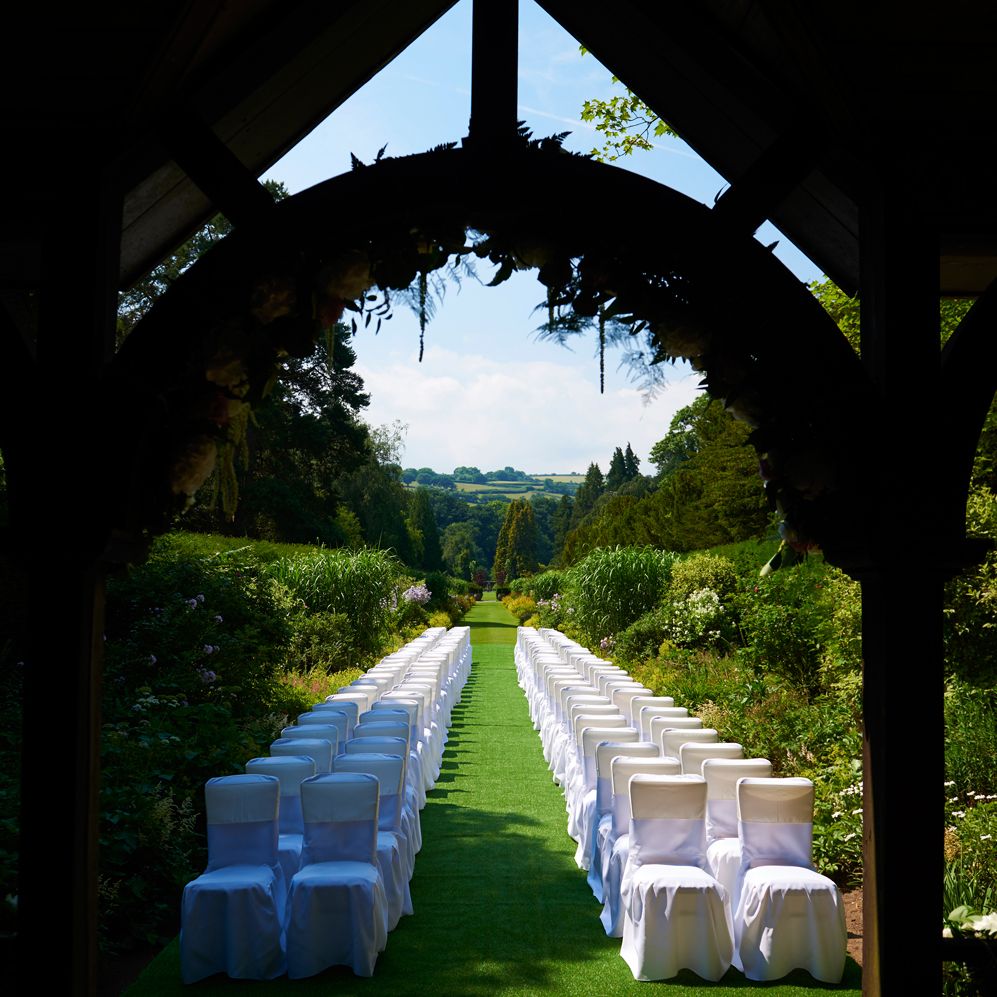 Bovey Castle Weddings: Experience the wedding of your dreams at Bovey Castle, Devon. Our stunning castle venue offers bespoke packages, award-winning suppliers and dedicated wedding planners to ensure your special day is perfect. With its rich history and effortless elegance, Bovey Castle offers a truly unique setting for your dream wedding. Nestled in the breathtaking countryside of Dartmoor National Park, we provide the perfect backdrop for you to say 'I do'. Our dedicated events team is here to guide you through every step of the planning process, from the grandest gestures to the finest details, meaning you can relax and enjoy the journey to your perfect day. Our carefully curated list of award-winning suppliers ensures that your wedding is nothing short of exceptional. From exquisite dining to stunning floral arrangements, every detail will be taken care of. Yours to command! For something a bit special, our exclusive use packages offer the chance to close the doors on the outside world and treat Bovey Castle as your own private estate for your celebrations. With award-winning suppliers and impeccable service, your wedding at Bovey Castle will be an unforgettable experience. Forever Starts Here