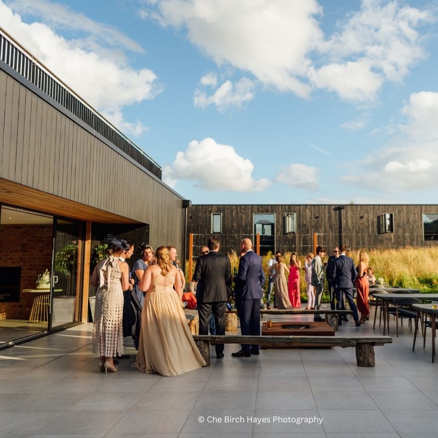 Begin your journey at Crumplebury with an unforgettable ceremony in The Gallery. Here, you’ll make your vows to one another in front of floor-to-ceiling windows that offer panoramic views of the rolling countryside beyond. Following the ceremony, guests are invited to mingle and toast the newlyweds in The Drinking Trough, a charming space designed for drinks receptions. Sip on signature cocktails, local ales and ciders as you look out onto the home farm. Then, you’ll make your way into The Great Barn, where a sumptuous wedding breakfast awaits. One of Crumplebury's standout features is its commitment to culinary excellence. From seasonal menus crafted with locally sourced ingredients to bespoke dining experiences tailored to each couple's preferences, the food at Crumplebury is nothing short of exceptional. After dinner, continue the festivities on The Sunken Terrace, where guests can enjoy evening drinks and indulge in a sizzling BBQ or pizza feast under the stars. The atmosphere is alive with music and laughter as you dance the night away and celebrate with up to 150 of your friends and family.