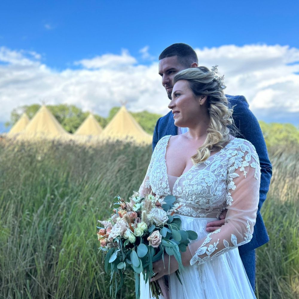 We first went to see Elms Meadow when the tipi was not even up and knew from that moment this was the ideal location for our wedding. The wildflower meadows and the views. It didn’t disappoint on the day. We booked it over a year before and Claire and Barry were the best throughout and nothing was too much trouble. They even let me choose the beer for my family for the day from their brewery as I know how hard they are to keep happy ???? Everyone loved the venue and all the extra touches. When night fell we got some amazing pictures round the fire pit. Thank you so much for making our wedding everything we had dreamed of.