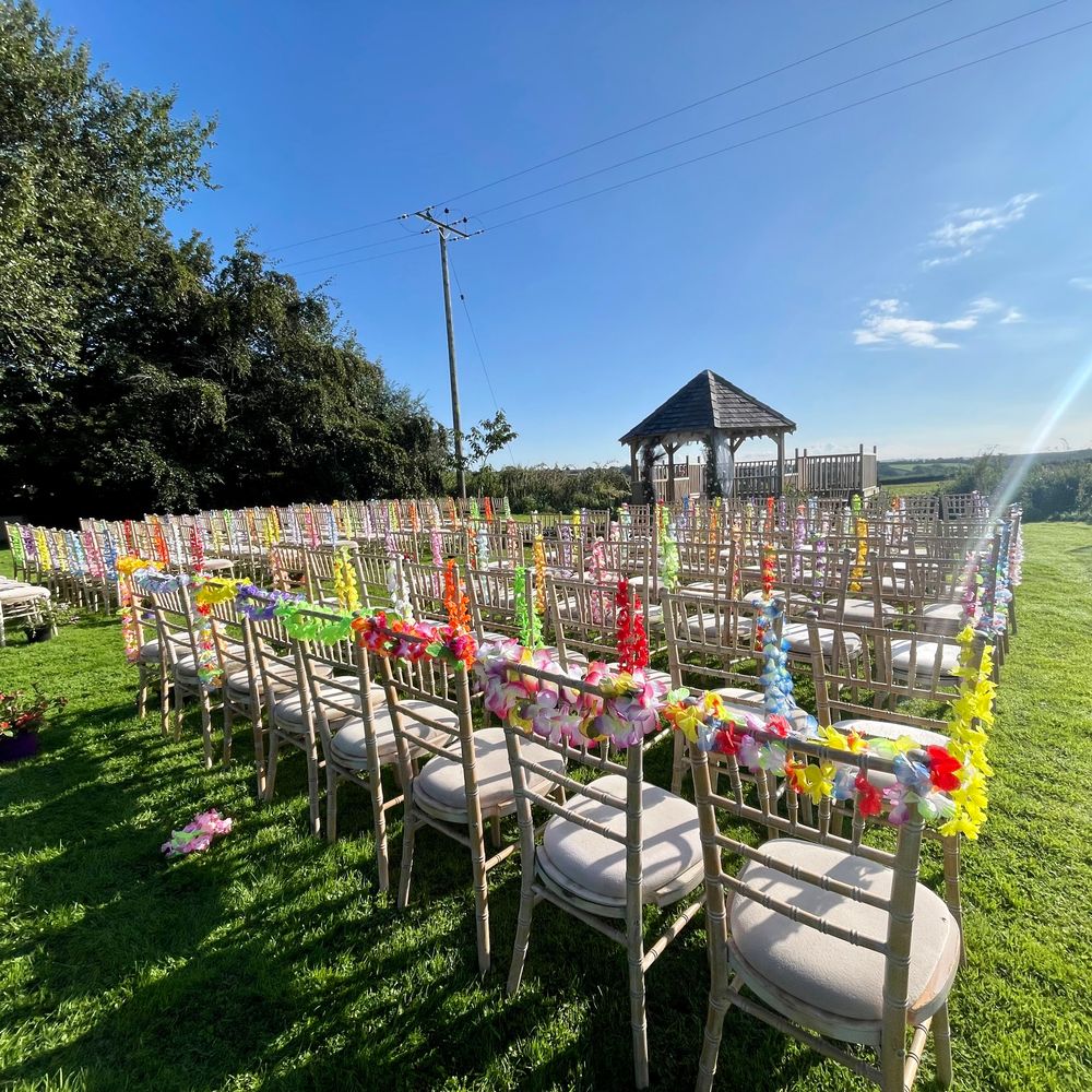 Honey Meadow Retreat Set in 4 acres of mature grounds with a back drop of the beautiful Devon Countryside, We offer totally Unique Bespoke Weddings, with a Romantic Rustic Theme. The Venue is exclusively for you & your guests for the whole weekend with onsite Accommodation & Catering, Bar etc... At Honey Meadow Retreat, we understand the importance of your wedding day. That’s why we offer a comprehensive package that covers all your needs – The accommodation that contributes to the Venue Hire, Wedding Arbour, Large & Small Barn, Tipsy Horse Bar, Wood Fired Pizza's, Our goal is to make your wedding as effortless and memorable as possible. Embark on a stress-free journey to your dream wedding with Honey Meadow Retreat. Our team, led by the experienced and creative Harriet, is dedicated to crafting your unique day, whether it’s an intimate gathering or a grand celebration. Immerse yourself in the full weekend experience with our delightful range of accommodation. From cosy cottages to enchanting glamping options, extend your stay and cherish more moments with family and friends in the heart of Devon’s stunning countryside. This is where memories are made. With Everything in house and Harriet with you helping with all planning and co-ordinating keeping it stress free