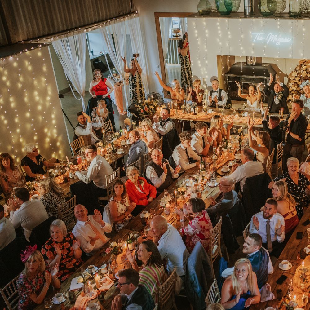 We are licensed for up to 150 guests in the Marquee and Grain Store and 120 in the Foundry. For more intimate weddings we can sit up to 26 in the oak-panelled drawing room in the house. How many guests can Houchins accommodate to sit down for the wedding breakfast? We can comfortably seat 150 guests in the Grain Store – 100 downstairs and 50 upstairs in the mezzanine. Do speak to the team about your seating plan options.