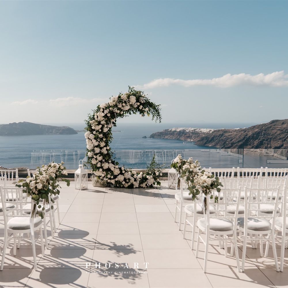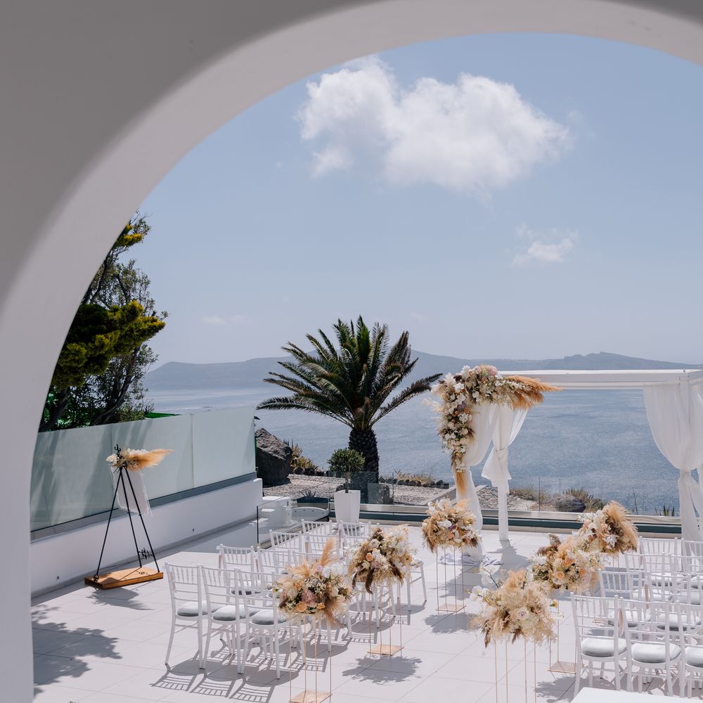 I got married on 29 July 2019 and this was the most magical day of our lives. The views are breath taking, the food is so filling, huge portion sizes, the venue itself is stunning. Even if you decided to go for the most basic decor, it wouldn't be noticable because the because selling point about this venue is the panoramic views. This is by far the nicest wedding venue in santorini. I would recommened paperflowercyprus for the deocrations (find her on instagram) and i used the wedding planner called Flora Bekri (unique and forever wedding planner), i paid for a custom made planning. My advise to all brides, do not get married abroad without a planner. You must have someone to coordinate the day and tell your guests where to go and when to go etc. By far the best money spent! worth every penny