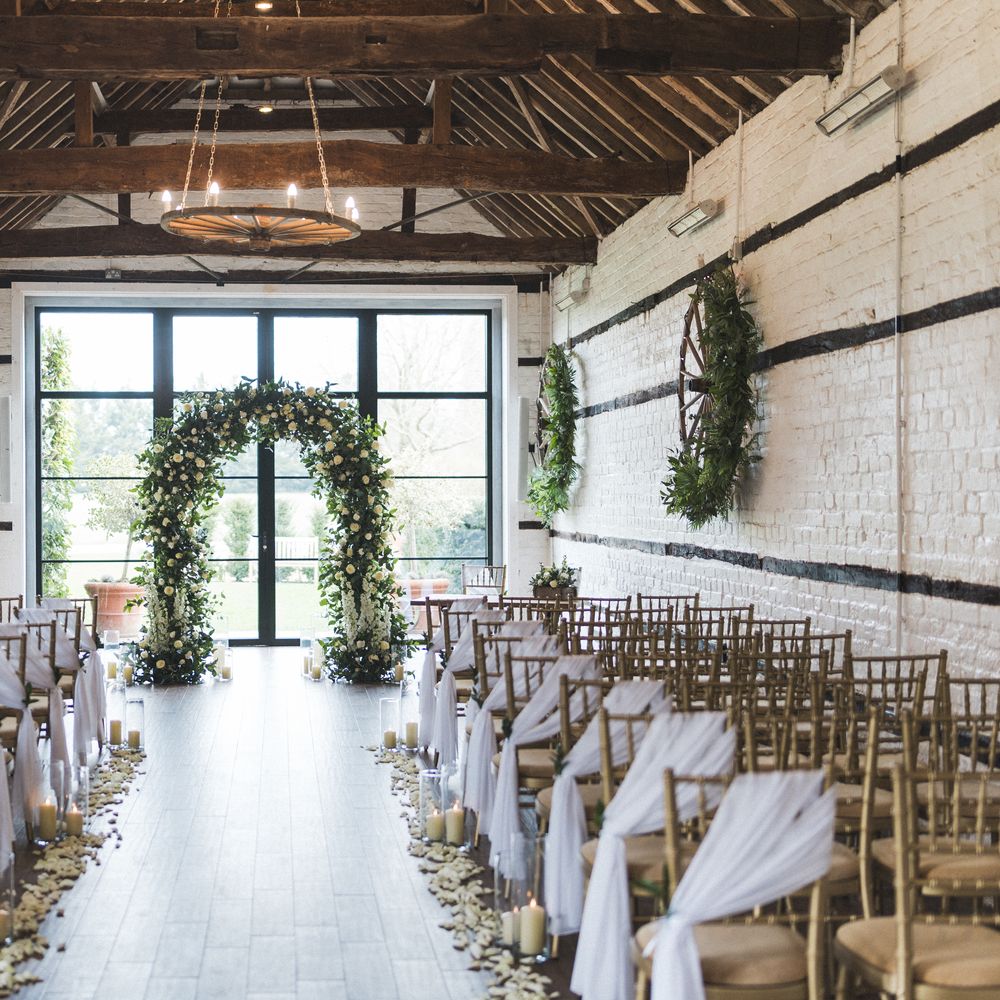 Lillibrooke Manor, in the heart of Maidenhead, Berkshire, is the perfect setting for your dream wedding. With 15 acres of stunning gardens, enchanting ceremony spots, and beautiful barns, it offers a truly magical experience. Enjoy luxurious suites, charming reception areas, and cosy overnight stays This Grade II listed estate offers exclusive use, ensuring that every part of your day is tailored to your vision. The newly refurbished Tack Barn and Cottage Room provide luxurious preparation suites for both partners, making getting ready a relaxing and enjoyable experience. Couples can choose between two beautiful outdoor garden wedding ceremony spots—the romantic Cloister Garden or the Manor House Garden. Both settings offer an enchanting backdrop of flower beds and lush striped lawns, perfect for those special vows. For indoor ceremonies, the Small Barn, with its country-church charm, can seat 130 guests. Meanwhile, the impressive Great Barn is perfect for larger celebrations. Adjacent to the Great Barn is the Engine House, a unique hexagonal room with grand windows that is ideal for drinks receptions and casual gatherings. After the festivities, you and your guests can stay in one of the charming overnight accommodations, including The Manor House, Loft, and The Old Piggery.