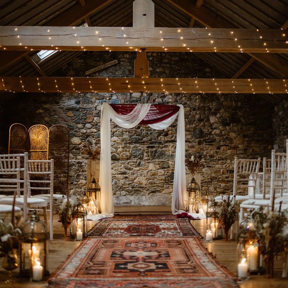 Choose between; - A magical woodland, complete with babbling brook, bird song and amazing dappled light – plus it's only a welly wang from the barn. - The beautiful garden, nestled between the farmhouse and the pond with some of the Lakes finest hills in the background. - The wonderful Lovable Old Barn, underneath the grand old beams or downstairs in the Cow House with as many or as little decs as you like. - And, for elopements and micro mega kinda days, you can also get hitched in the charming and oh so handsome and characterful library, within the farmhouse, in front of the roaring fire by candlelight.