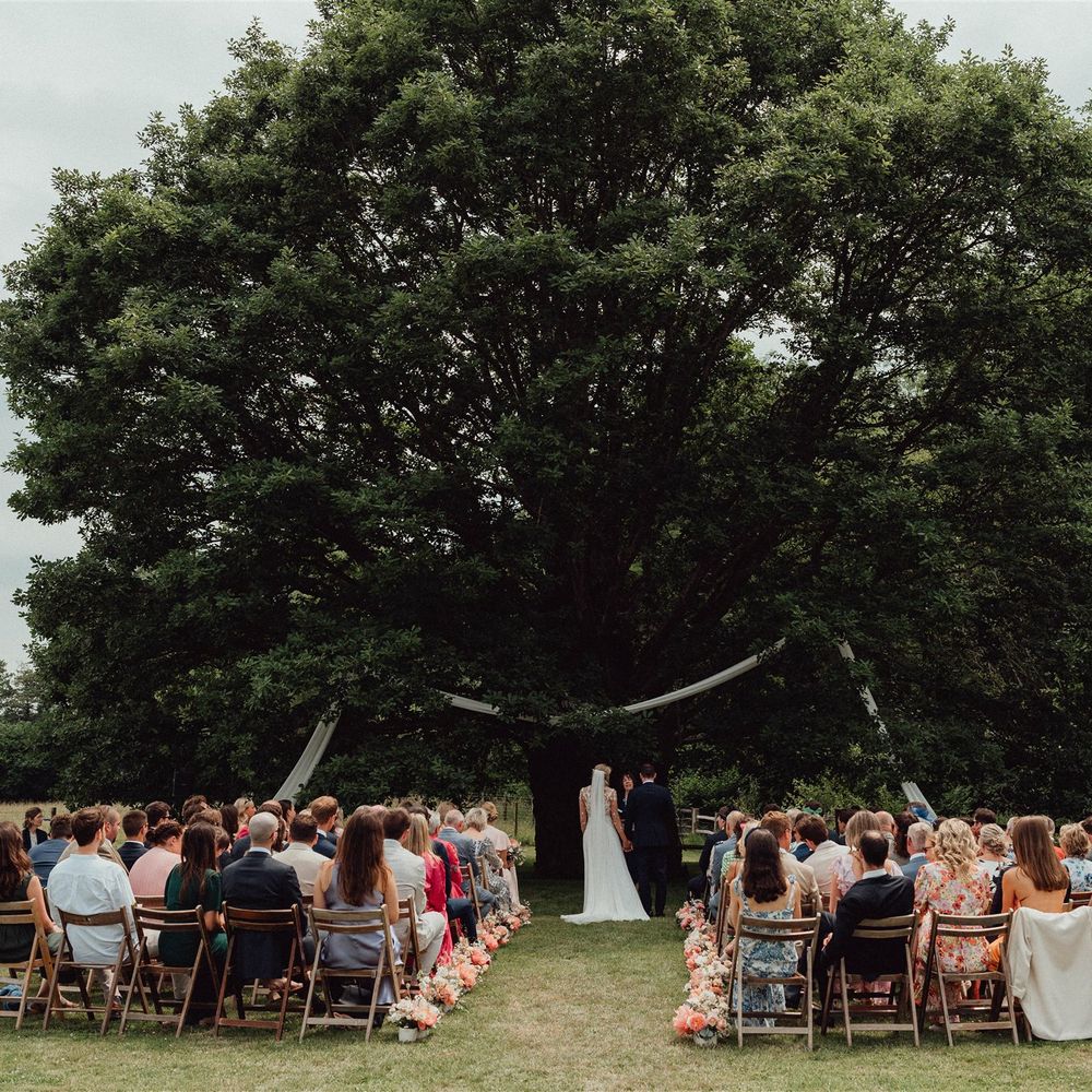 We knew Lower House Farm was the place we wanted to get married the first moment we saw it – it’s just the most breath-taking venue you could ever imagine. It was wonderful to have the ceremony under the oak tree and just joyous hearing our guests say what an extraordinary place it was. The food is beyond delicious too – really exciting flavours, served with generosity and style. We might be biased, but we think it was the best food of any wedding we’ve ever been to. Emily and Nicole were fantastically proactive from start to finish. We really felt they were looking out for us and had every little detail covered, including great recommendations for suppliers. It felt so reassuring to know we were in such safe hands. Everyone commented on how friendly and lovely the serving and bar staff were too. Our day was everything we wanted and so much more – and that wouldn’t have happened without Lower House Farm and everyone there.
