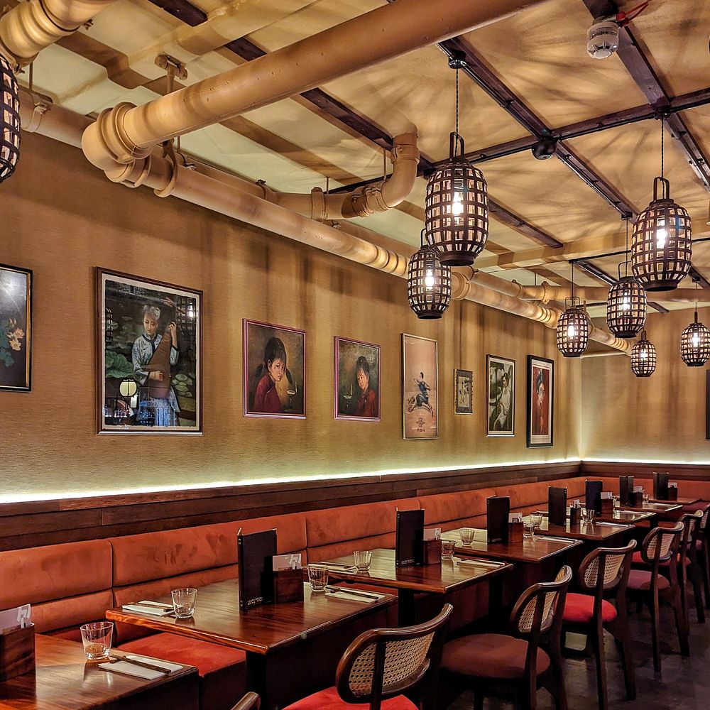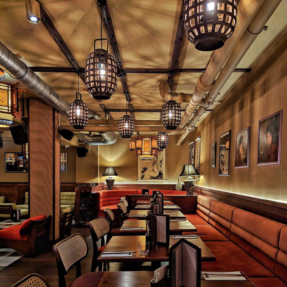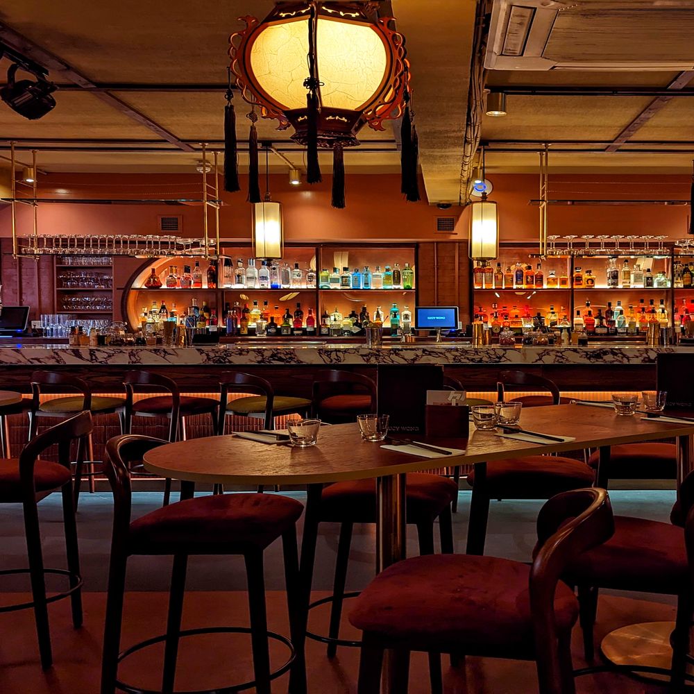 Lucy Wong is a chic late-night bar in central London, inspired by 1950s Hong Kong. Offering an intimate atmosphere with Asian-themed cocktails, dim sum, and roast meats. There are multiple areas for different group sizes or privately hire the whole venue. Lucy Wong is a chic private hire venue in Fitzrovia, London, perfect for wedding receptions and special events. With a 1950s Hong Kong-inspired design, this stylish bar offers an intimate atmosphere, ideal for bespoke venue hire. Offering flexible event packages make it easy to host a unique and unforgettable wedding reception at this elegant central London venue. Whether your looking for sit down meals up to 80 people or standing receptions up to 200 Lucy Wong is a glamorous location for your wedding celebration. Toast to your future with Asian-themed cocktails, these can be renamed to at a bespoke feel to your day or with a delectable glass of wine from their curated wine list. Enjoy Cantonese treat from such as dim sum, and roast meats, or choose from the canape menu with delights such as bao buns and vegetable tempura. With its own DJ booth and large open bar you can dance the night away. Fancy putting on a live act instead? There's space for that too.