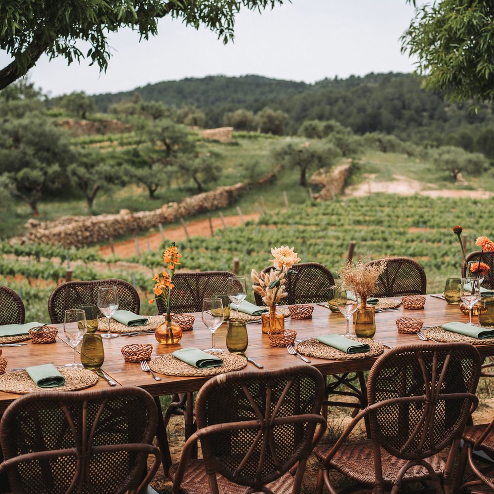 A picturesque private vineyard wedding venue near Barcelona, Masia Cabellut is a luxury villa nestled in a valley in Northern Spain, in the small town of Masllorenç, and just 25 minutes from the Mediterranean coast. Masia Cabellut is a beautifully restored villa and a secret gem, perfect for your magical wedding party whether it will be with 200 people or a cosy celebration with your closest friends and family. Combining Spanish heritage and modern style, this stylish villa has seven beautifully decorated light and spacious double rooms with en-suite bathrooms, sleeping up to 14 guests. For your guests, this luxury villa is just half an hour from convenient hotels in historic and vibrant towns like Sitges or Vilafranca de Penedes. Set in a valley and with exclusive use of the villa you can party late into the night and watch the sunrise with no curfew or neighbours nearby to disturb.