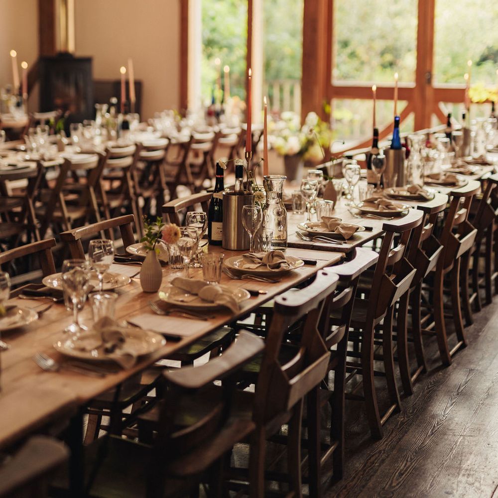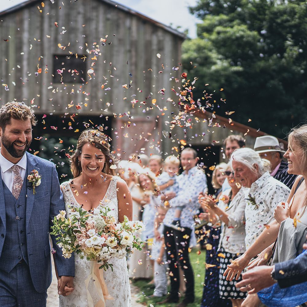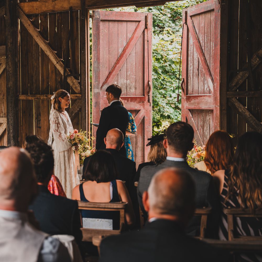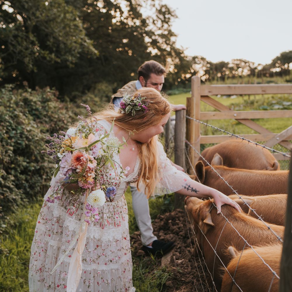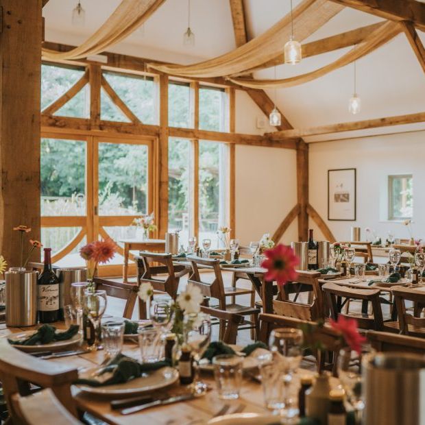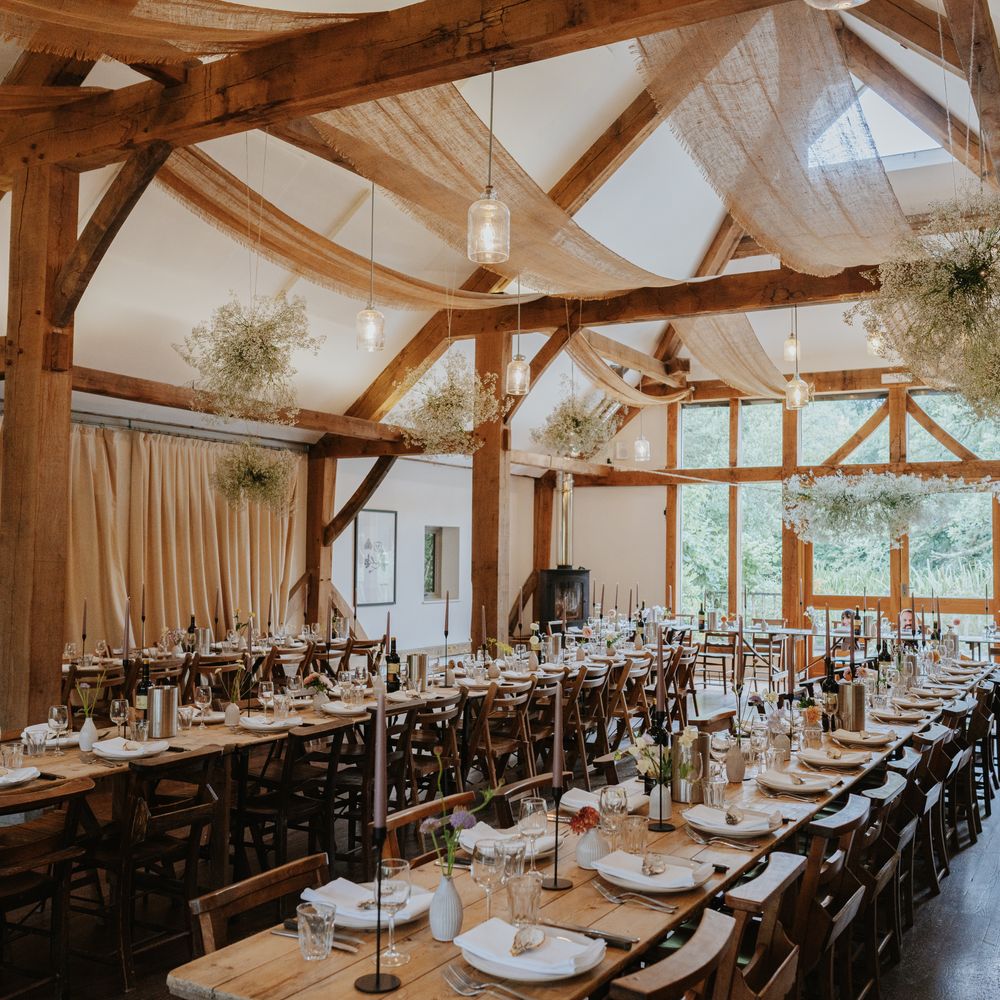 Tucked away in the heart of our Organic farm, our picturesque barns provide a naturally beautiful setting surrounded by a tranquil millpond, rambling roses, wild spaces, blooming meadows and fruit orchards. Using produce grown on the farm and our organic beef and lamb, our in-house team delivers an incredible farm-to-table feast for your wedding day and throughout your exclusive stay. Ensuring you have time to relax, enjoy, feel looked after and very at home. The farm is an atmospheric venue in all seasons. In the Spring, Summer and Autumn the site is filled with the colours and scents of flowers and herbs. With plenty of outdoor space to gather in the sunshine or find a shady spot next to the idyllic millpond. In Winter, a large wood burners and fire pits in the covered courtyard add warmth and atmosphere. All whilst creating a magical cosy feel with gentle lighting. Whether your vision is a 'wedding weekender', a large celebration, you're looking to elope, or gather a more intimate group of friends and family for your wedding day, we offer a range of packages for both mid-week and weekend celebrations.