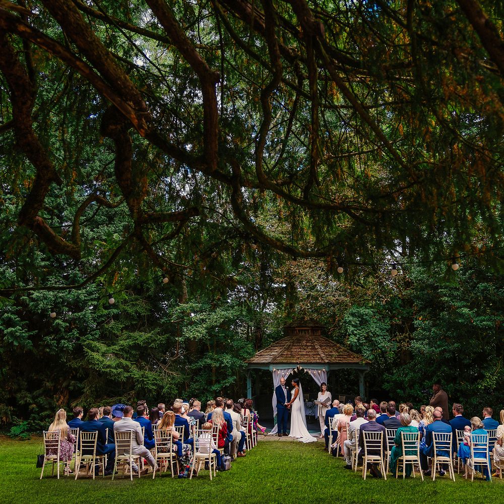 Yes! We have an indoor and outdoor ceremony licence. Whether you choose an outdoor ceremony held in our Garden Pavilion, under the trees using our stunning Grade II listed house as your backdrop, an indoor ceremony in our Orangery, bathed in natural light overlooking the gardens, or a more intimate setting in our Lavender Barn, we really do have the perfect setting to say ‘I do’. If your wish is for a traditional church service, we will welcome you from your ceremony at the front door with a glass of fizz.