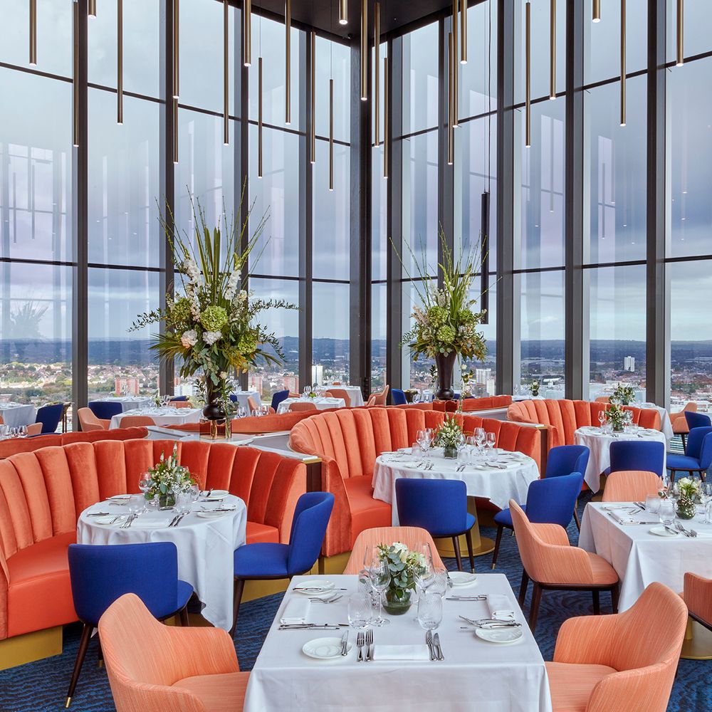 Orelle comprises a French restaurant located on the 24th floor of 103 Colmore Row with 360 degree views. Getting married is a special occasion for you both as well as everyone involved. Orelle's experienced events team will manage your day from the initial enquiry through to the big day itself. Orelle features a private dining room with panoramic views of the city that can seat up to 14 guests for lunch or dinner and a ground floor cocktail bar which hold up to 70 guests standing. For larger weddings, we can accommodate up to 120 seated or 180 standing. We can accommodate drinks and canape receptions, a sit down meal or exclusive parties. We can offer a wide range of event styles, guaranteed to impress your guests and make your wedding one to remember.