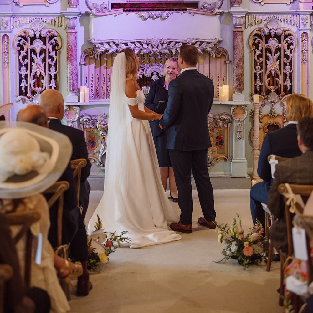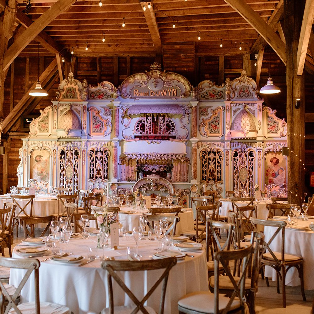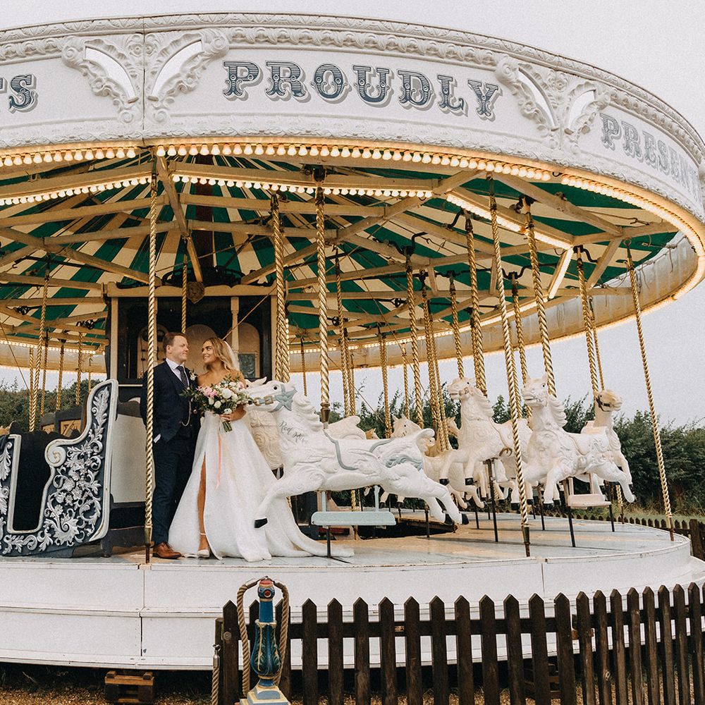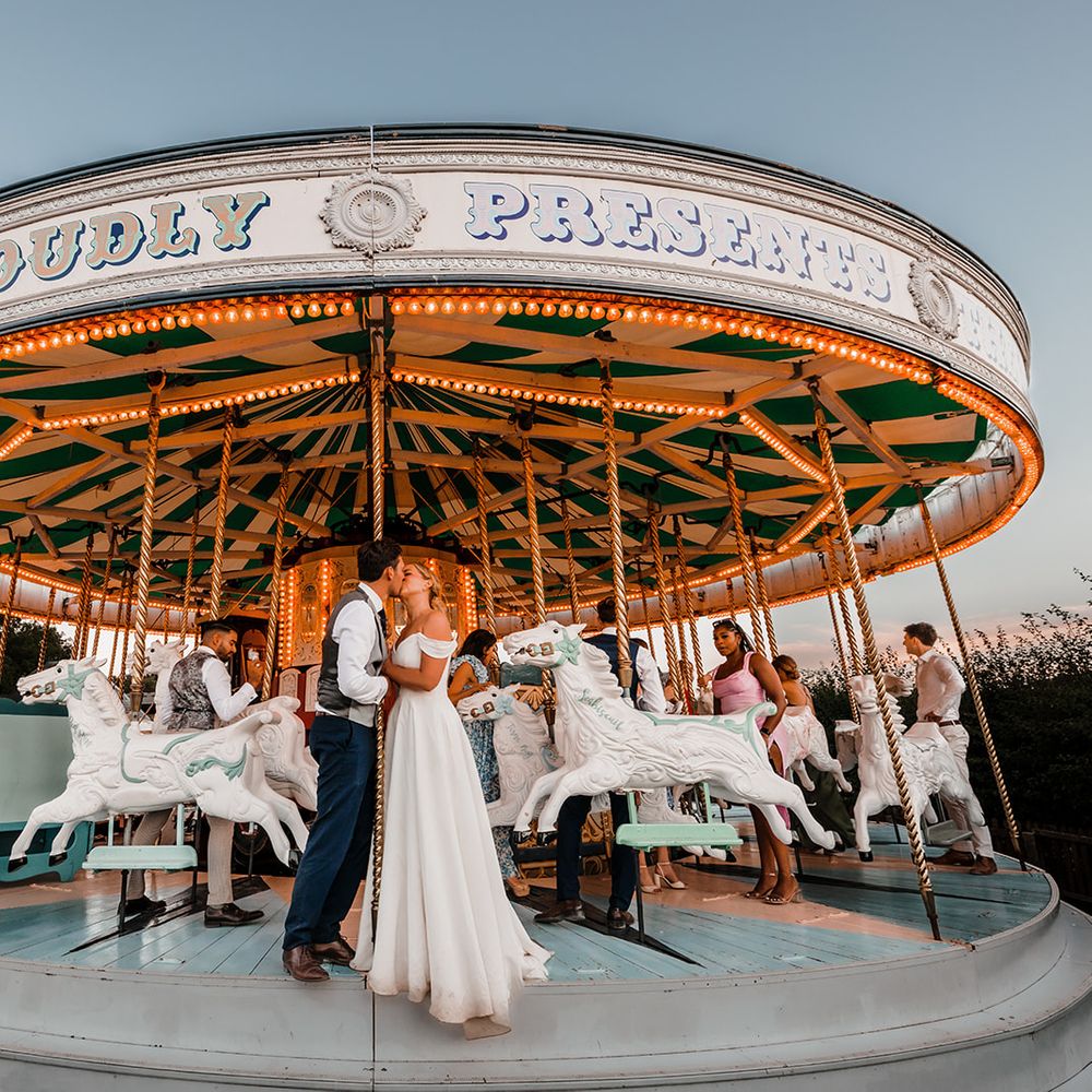 Juliana’s Island — a romantic lakeside island with a bridge approach Preston Court Estate The Kentish Barn — 17th-century oak barn with vintage theatrical organs Preston Court Estate A Kentish Ceremony St. Mildred’s Church — 13th-century on-site church seating around 120 Preston Court Estate The Vintage Carousel — truly unique: it is licensed for wedding ceremonies and can be part of your celebration.