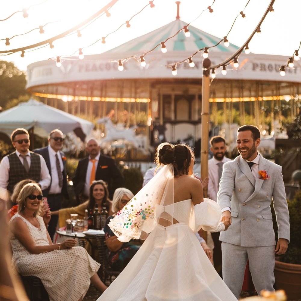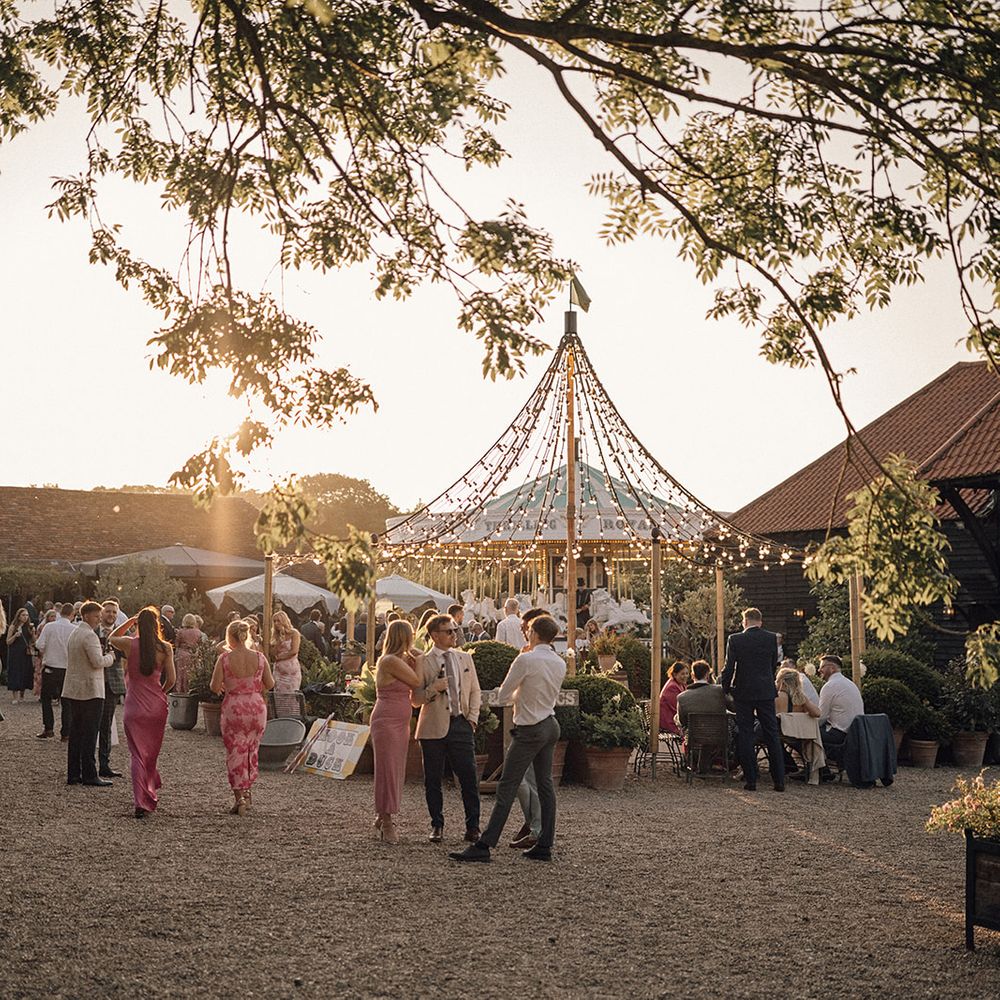 At Preston Court, history, beauty, and playfulness come together to create moments that feel larger than life. From fairground rides and lakeside views to the charm of our 17th-century barn, we’re not just a venue – we’re a backdrop for stories people will remember forever. ✨57 Mins by train from London St Pancras ✨ Step into a place where every detail feels magical. At Preston Court, history, beauty, and playfulness come together to create moments that feel larger than life. From fairground rides and lakeside views to the charm of our 17th-century barn, we’re not just a venue – we’re a backdrop for stories people will remember forever. We host weddings and receptions outside on Juliana's Island and in the magnificent barn. Ride on the carousel, dance outside under the twinkly lights maypole and sleep under the star in our luxury glamping accommodation.