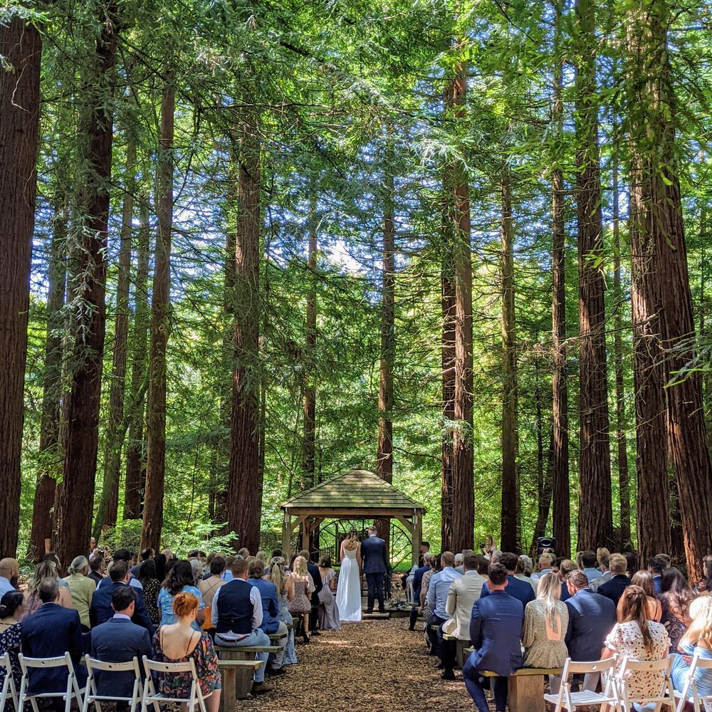 I wish I could give more than five stars to review this unique and amazing venue. We got married here last year August and each and every one of our guests are still talking about what an amazing day it was. The Redwood forest is the most enchanting place, that just brings a sense of calm as soon as you step through the beautiful iron gates. What an incredible aisle to walk down to meet your new life partner. There is an incredible natural sheltered canopy of trees above little benches, and tea light lanterns all lead the way to the stunning ceremony area. We used the barn for our reception and had bell tent glamping in the field with a campfire till the early hours that our guests enjoyed while we made the most of the luxurious wedding night loft. There are endless options and choices for any couple to build the day of their dreams at this truly special venue. The owners are incredible, and do everything they possibly can to make sure your wedding day not only runs perfectly but that you actually get to enjoy it too, always with a smile on their faces and a look that shows they love what they do. I struggle to believe any couple could ask for more. If I had one wish it would be to get to have our whole day again exactly as it was from start to finish.