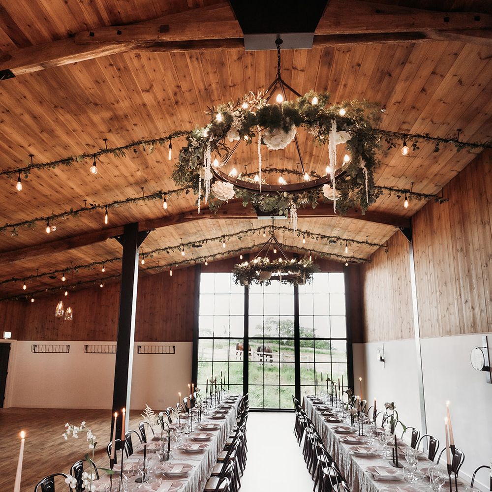 A hidden gem in the countryside, you'll find it tucked away amongst a patchwork of fields and rolling hills, ready and waiting for you to escape the hustle and bustle of everyday life. Its home to our enchanted walled garden, a picturesque lake and lovingly renovated barns. Upton Barn is an award-winning wedding venue in the Devon countryside, where a lavender-filled Walled Garden, serene lakeside and industrial barn create a magical setting. Licensed for ceremonies in The Cider Barn and The Walled Garden, the venue is exclusively yours for the day, with onsite accommodation, and conveniently located just off the M5 near Exeter and Taunton. The Cider Barn is a restored cob barn with oak trusses and handcrafted chandeliers, seating up to 156 guests. It offers space for live music, cocktails in the Press Bar and a lively evening reception with a raised stage and generous dance-floor. The Walled Garden features a lavender-lined aisle, glazed oak arbour and views of the Blackdown Hills. Guests can enjoy drinks on the terrace, and as evening falls, twinkling lights and fire baskets create a magical atmosphere. New in 2026, The Foundry brings live-fire feasts, panoramic views and a rooftop bar for relaxed celebrations.