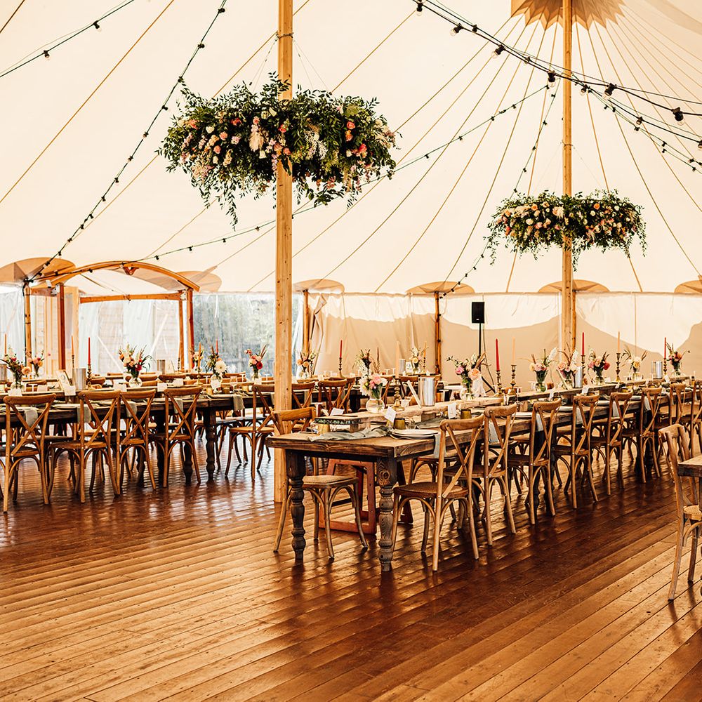 We are able to offer weddings throughout the year, however the month determines which of our venue spaces are available for your use. Our Sperry Tent and Oak Pagoda are only available for use April-September, whereas our stunning Silo Barn and Grain Store spaces provide incredible year round options for ceremonies and receptions.