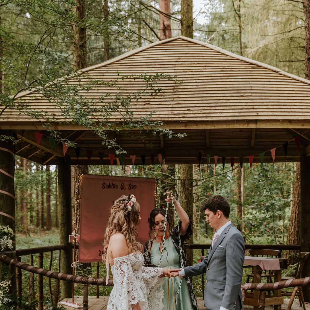 Irish Country Wedding in Marquee With Bridal Coat And Flower Installation