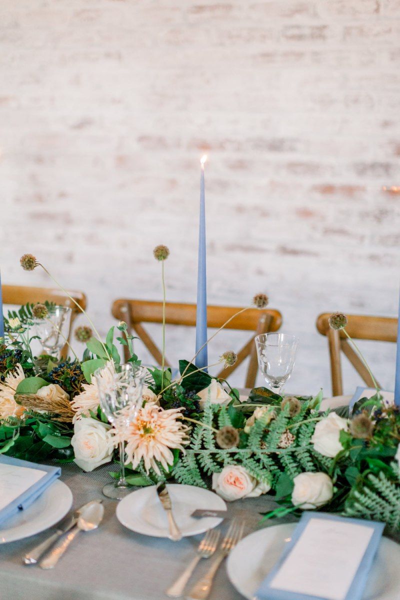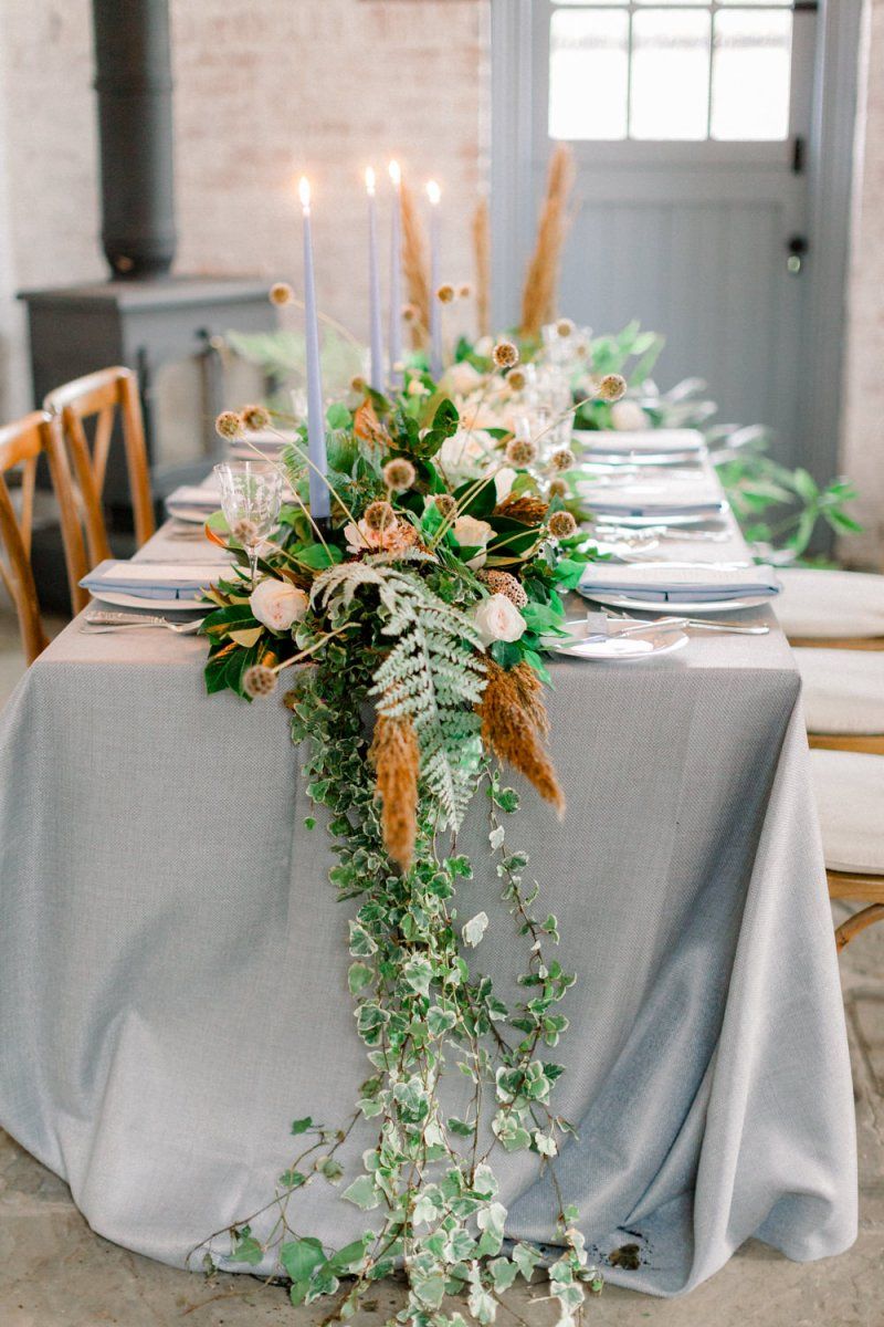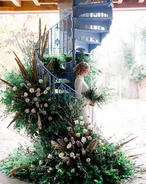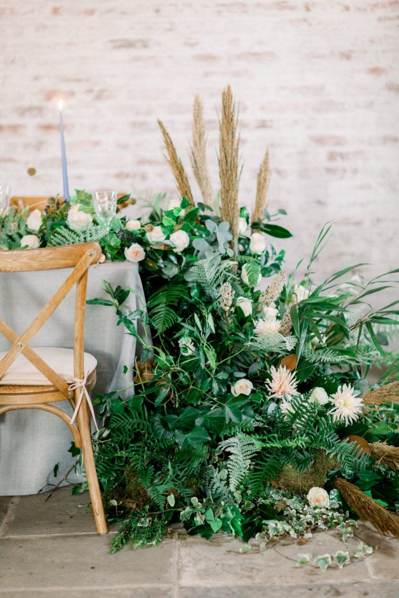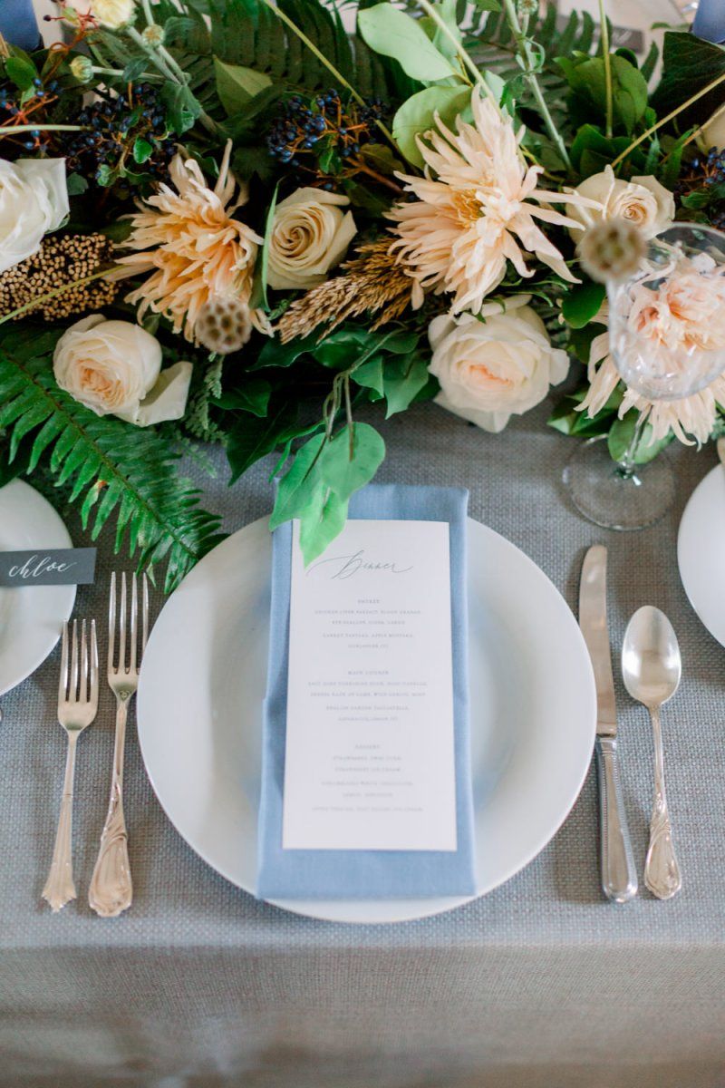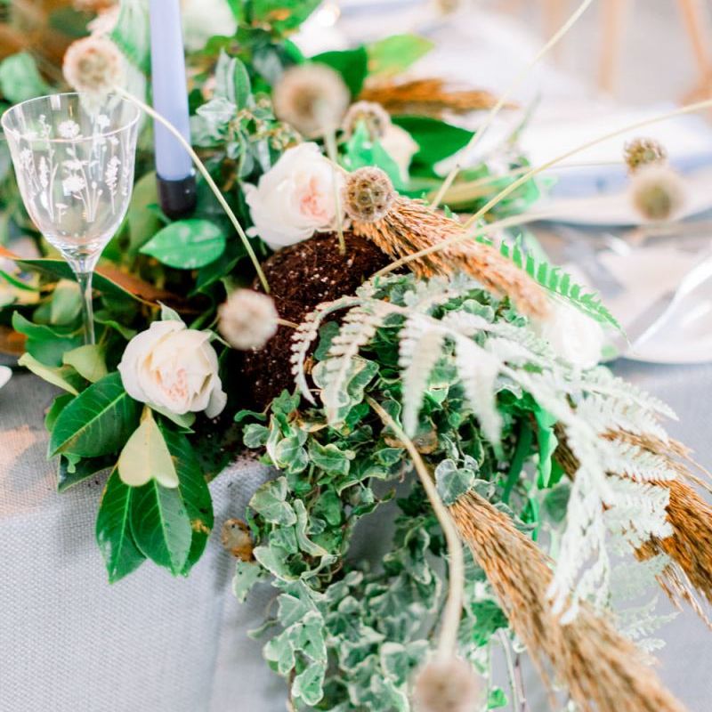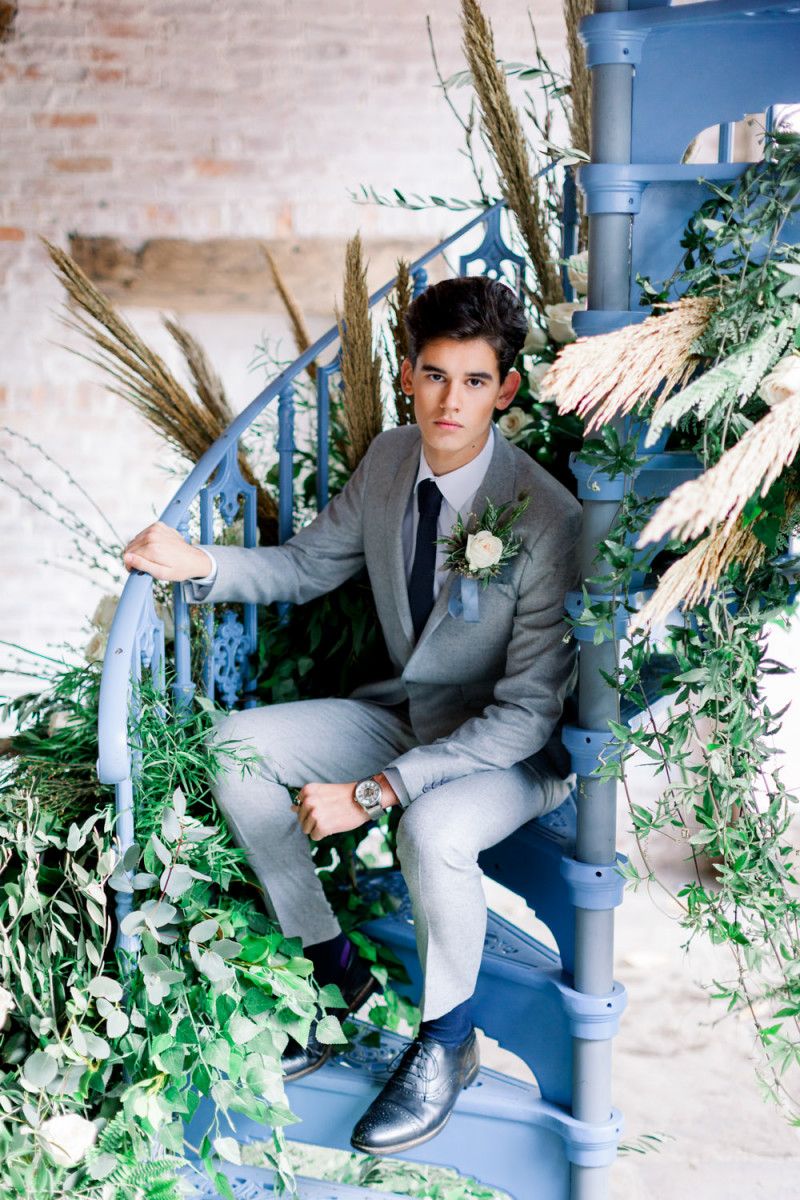 A group of talented wedding creatives headed for a beautiful styled shoot at the Cheshire wedding venue Dorfold Hall, a firm favourite among couples and suppliers alike. Capturing the magic and beauty that Winter has to offer was a major priority, and inspiration was taken from the beautiful shade of pale blue used on the Coach House doors and spiral staircase. This formed the basis for the cool colour palette, blues, greens, whites and pops of pale peach were used in the flowers, table set up and cake.